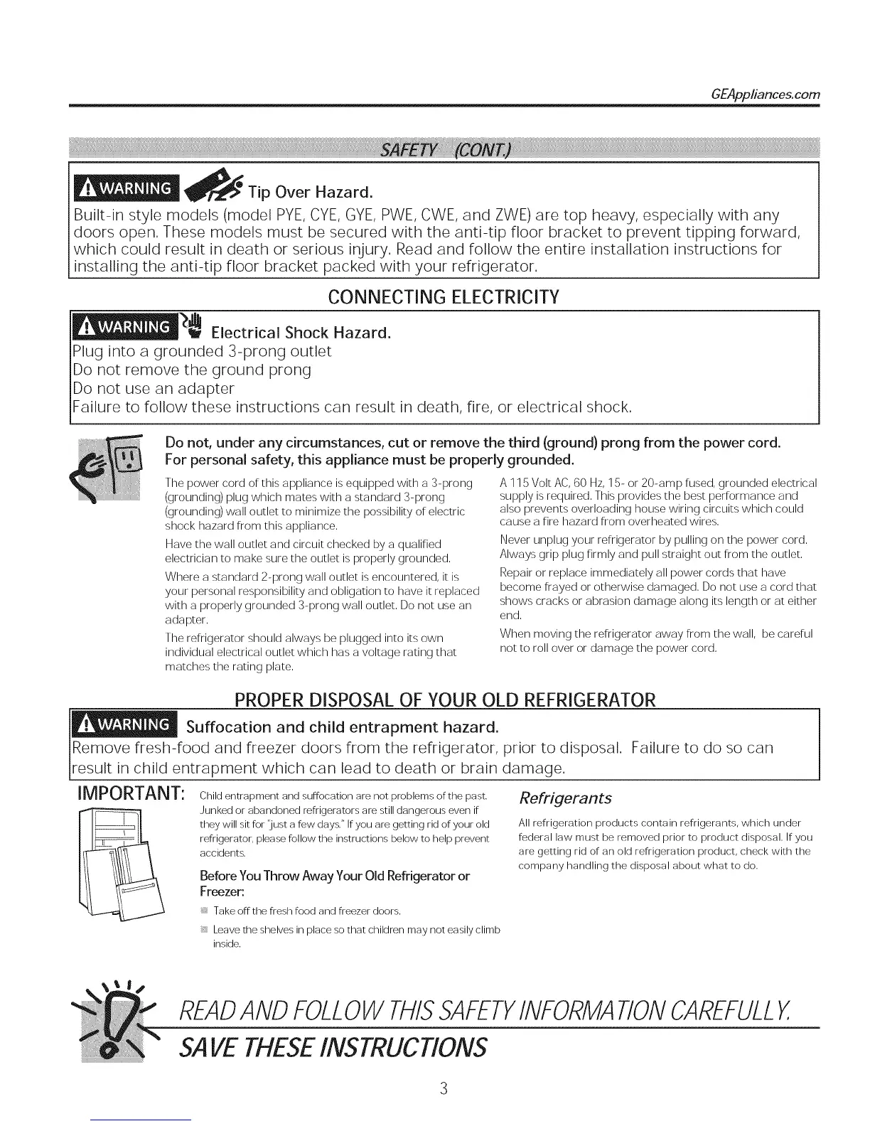 Remove fresh-food and freezer doors from the refrigerator, prior to disposal. Failure to do so can