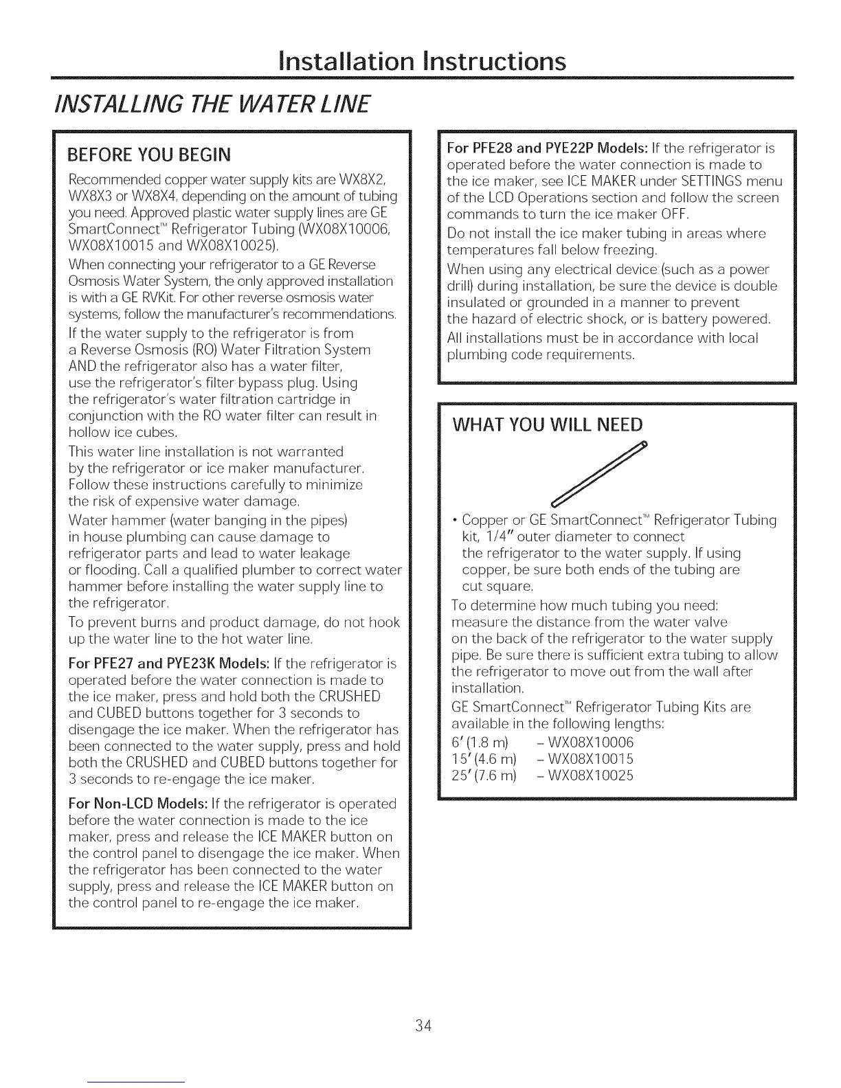• Copper or GE SmartConnect _MRefrigerator Tubing