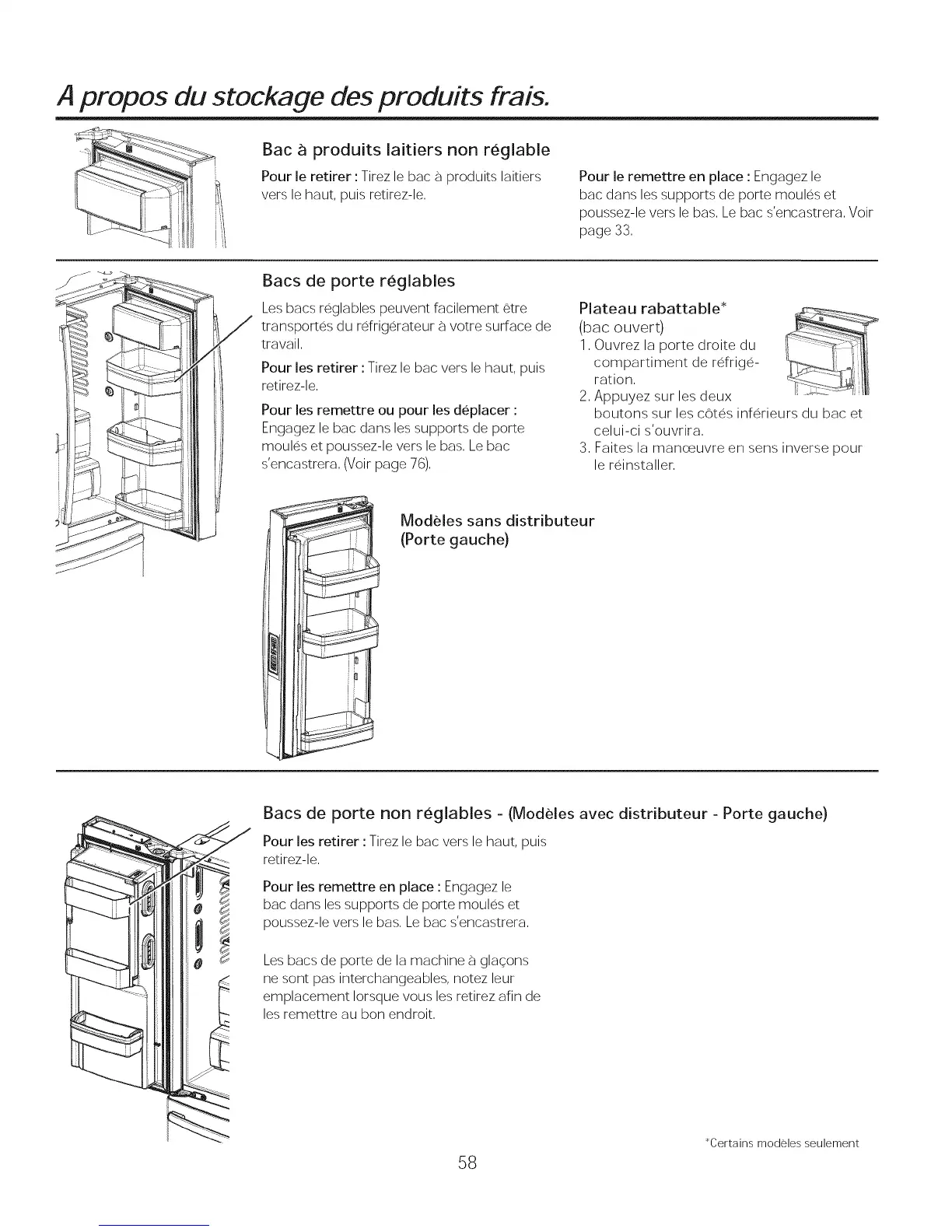 Bacs de porte non reglables - (Modeles avec distributeur - Porte gauche)