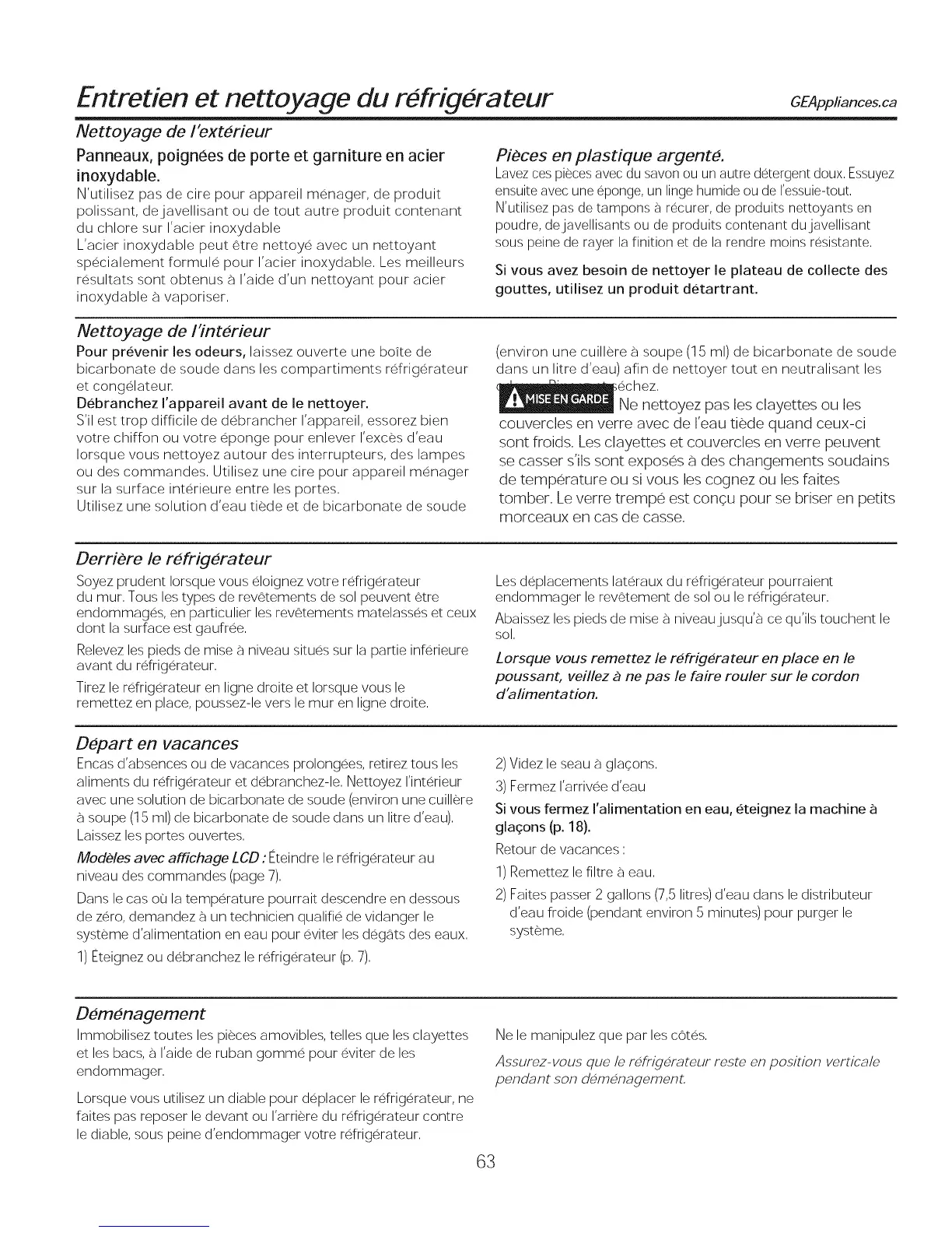 Entretien et nettoyage du refrigerateur GEAppliances.ca