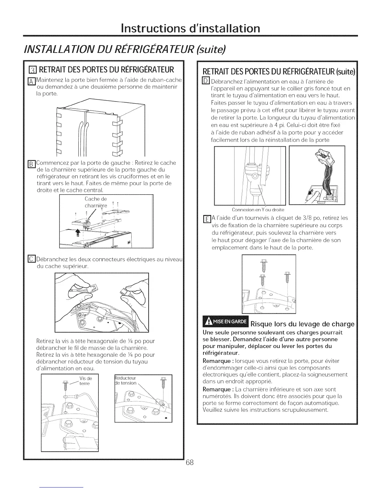 Remarque : Iorsque vous retirez la porte, pour eviter