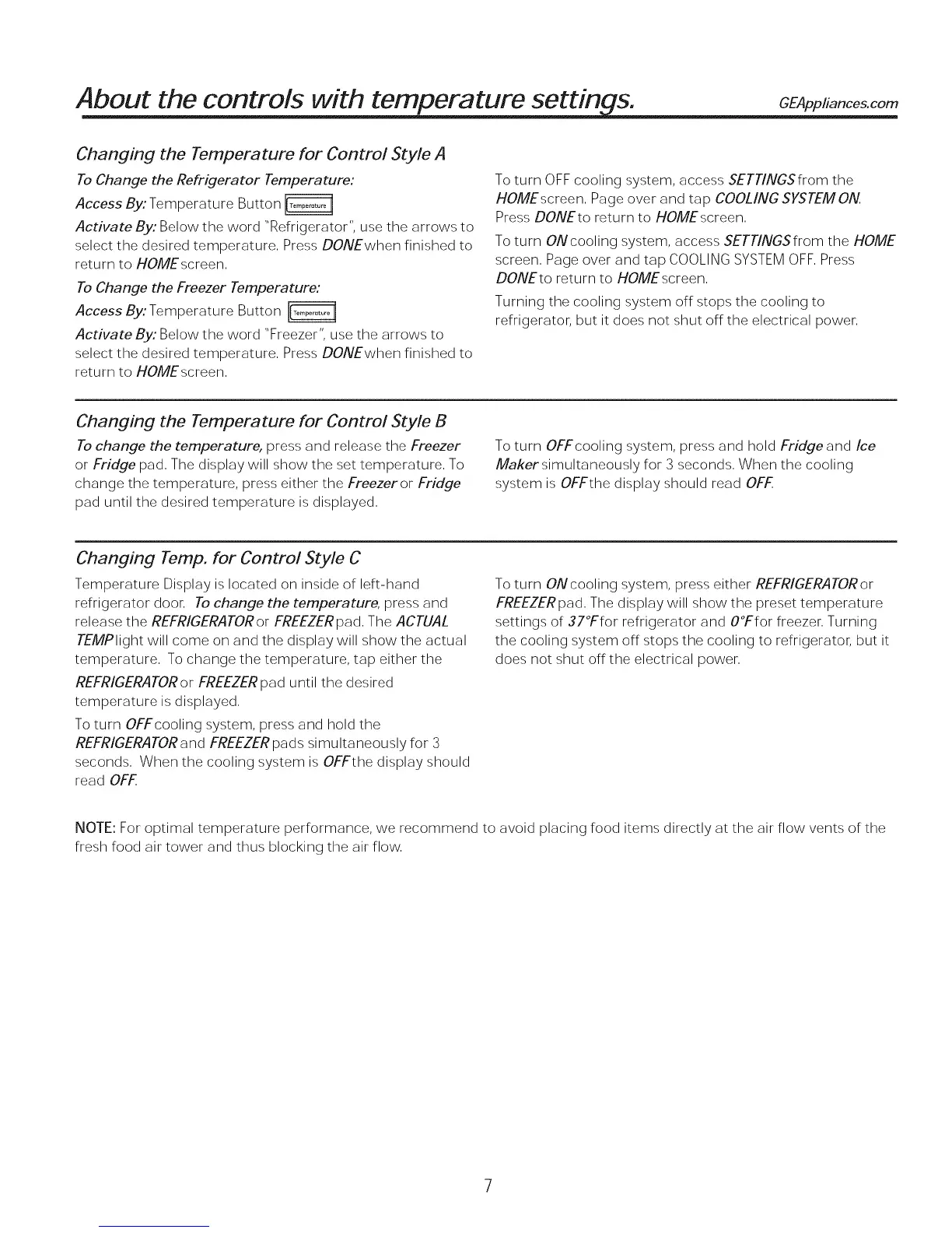 About the controls with temperature settin s. GEAppliancescom