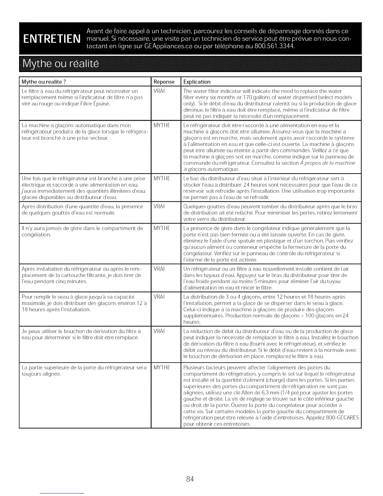refrigeration peut etre relevee a I'aide d'entretoises, Appelez 800-GECARES