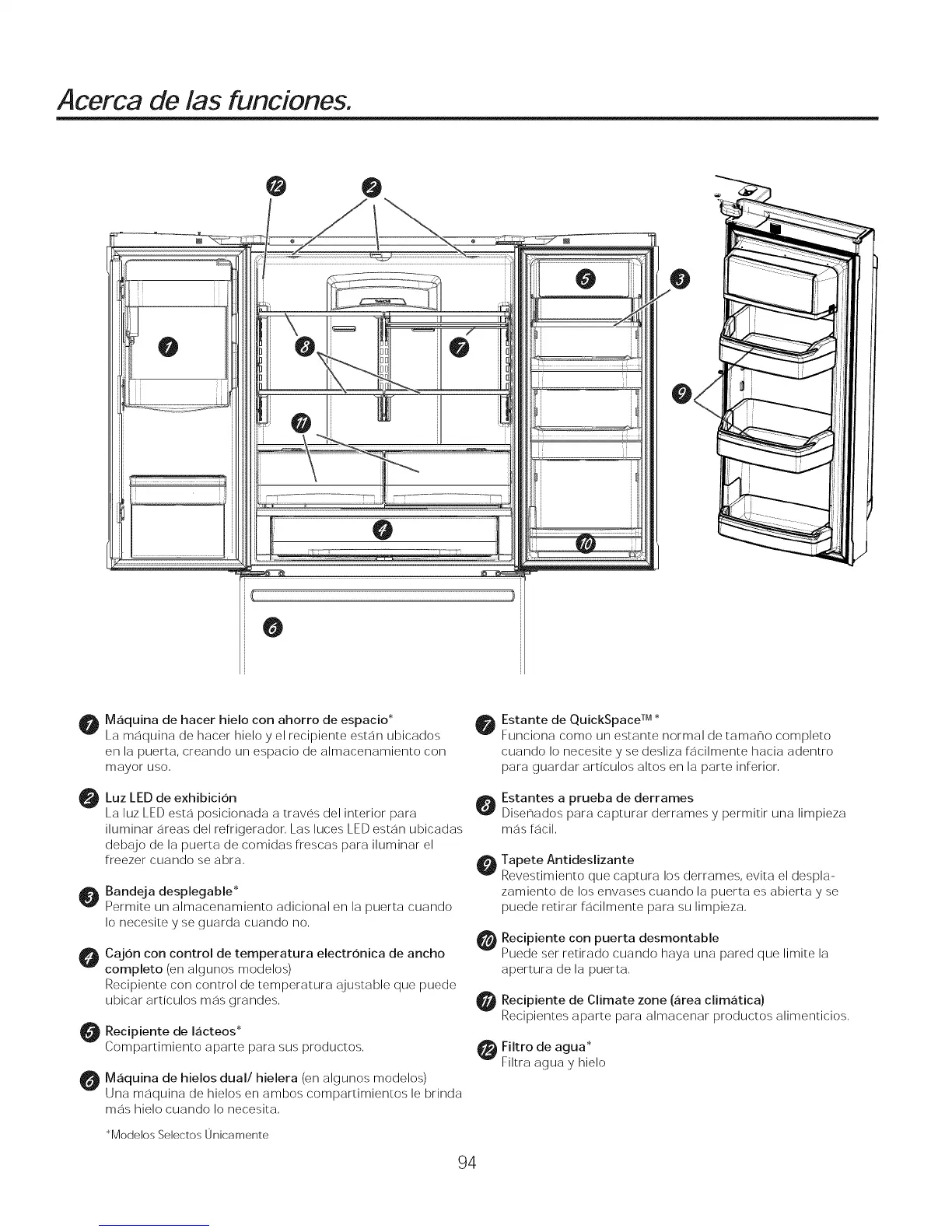 ihminar areas del refrigerador, Las hces LED estan ubicadas