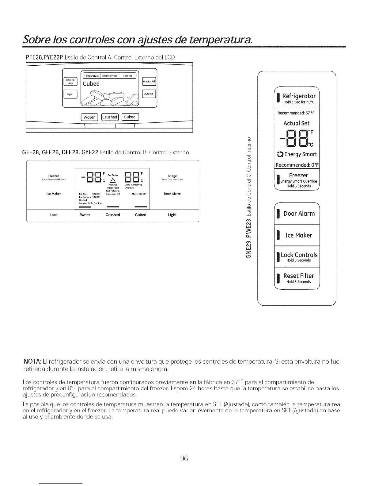 en el refrigerador yen el freezer, La temperatura real puede variar levemente de la temperatura en SET (Ajustada) en base