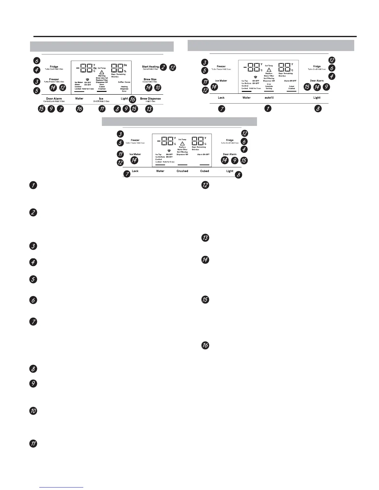 Control Style A - Press and hold Freezer and Brew Size