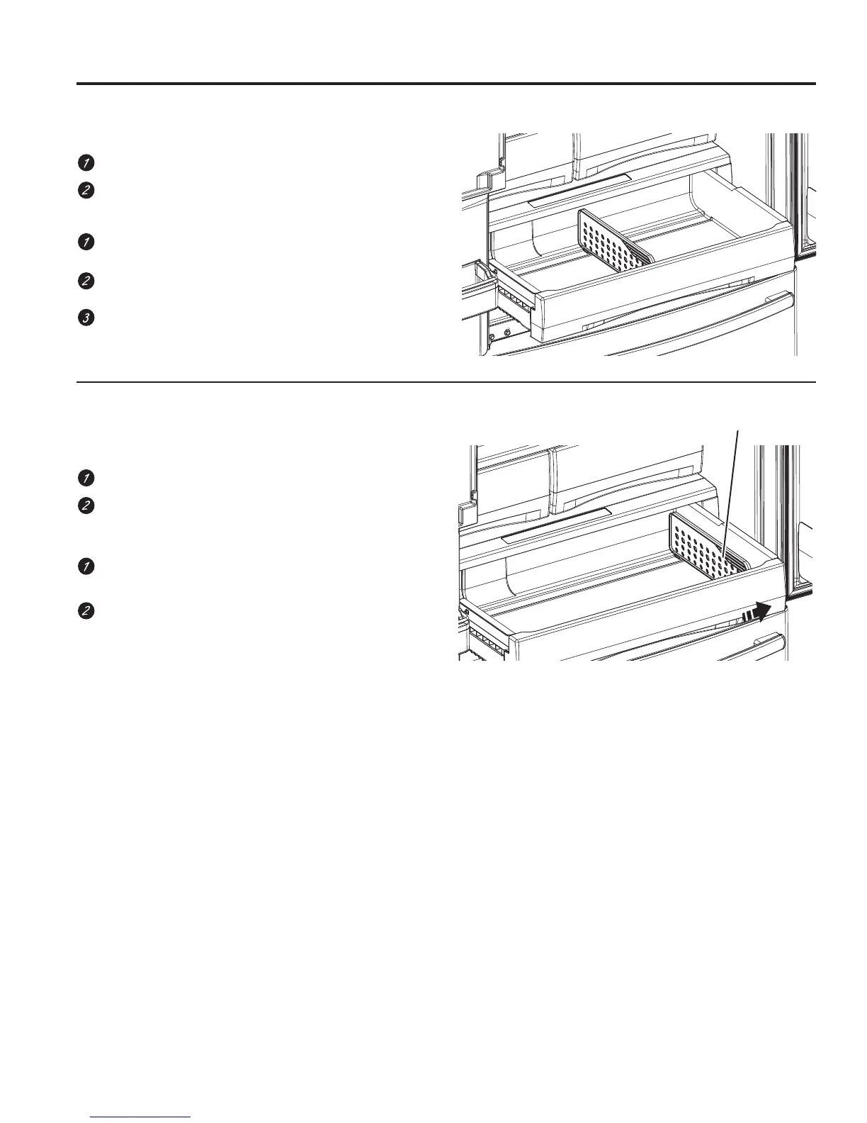 Levante la parte frontal del cajón hacia arriba y hacia afuera.