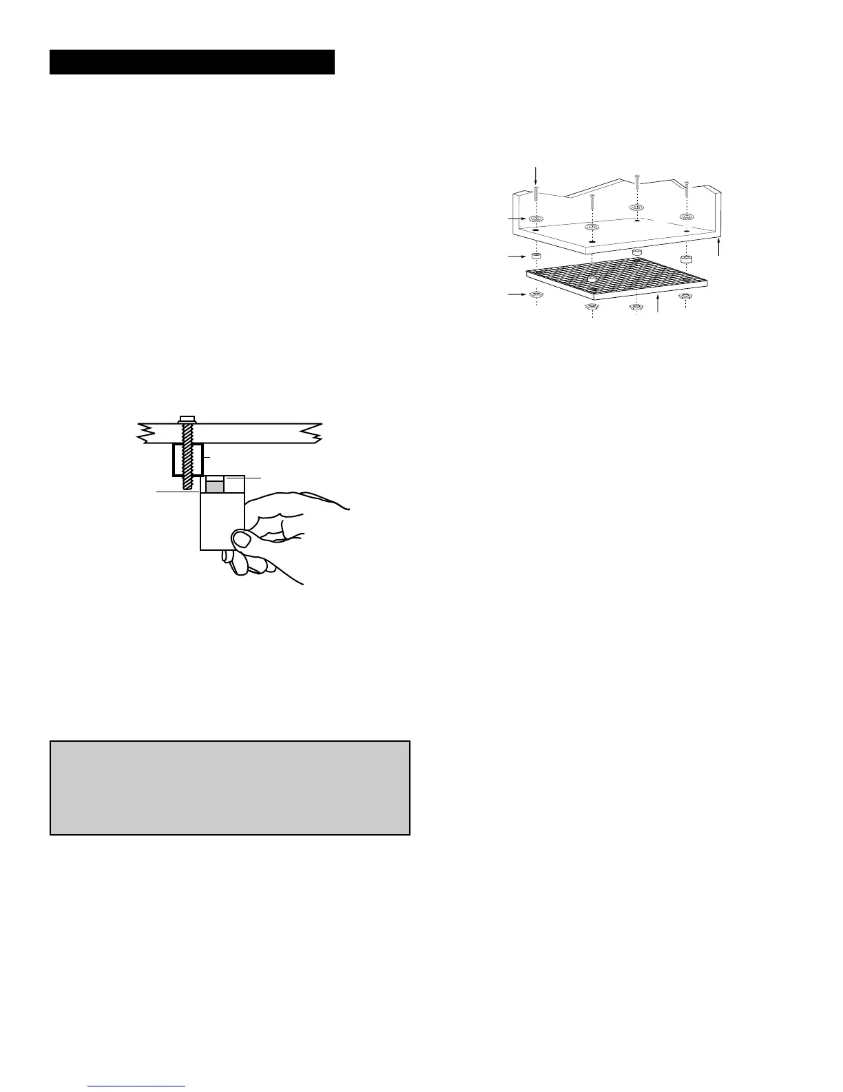 Note: The washers must be used on metal cabinets and on wood