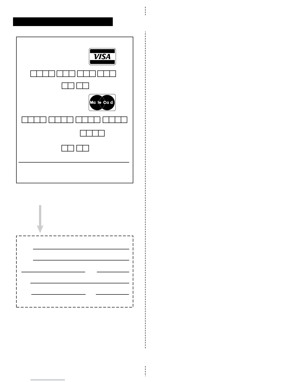 order form with credit card information, money order, or check