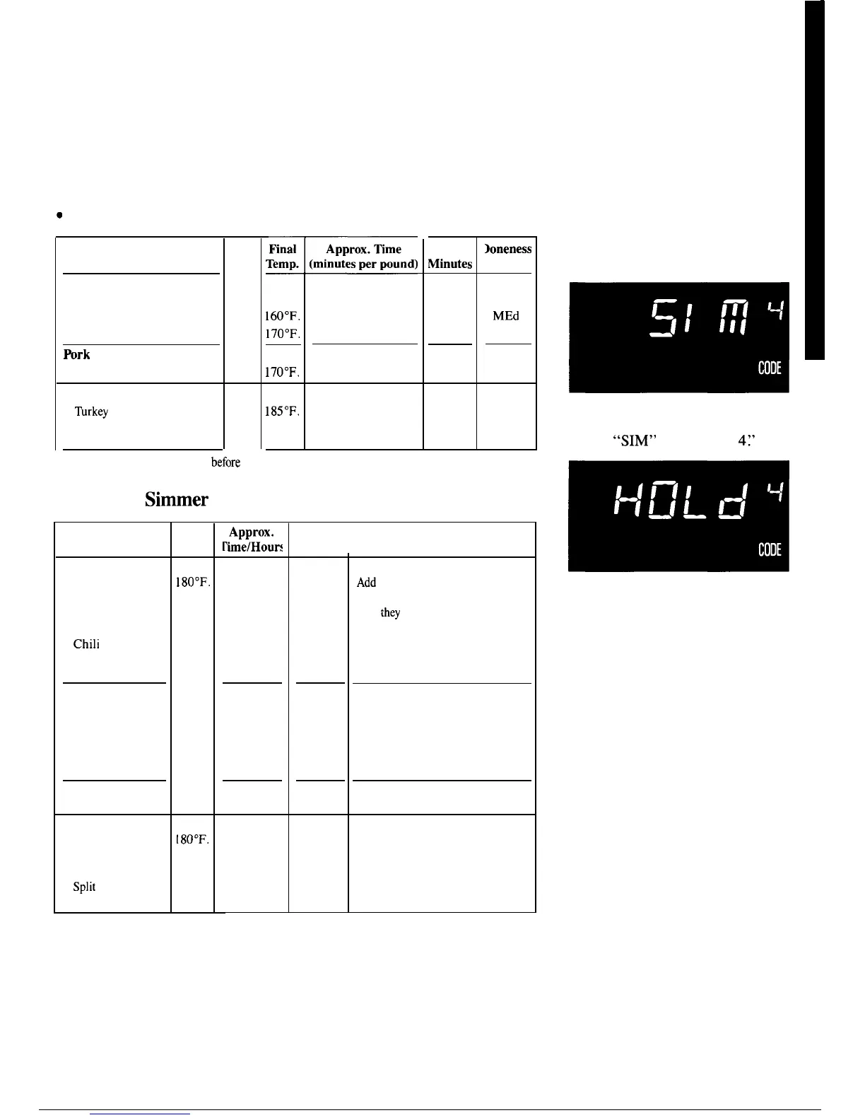 Recommended codes are also shown on guide behind door, on front of oven.
