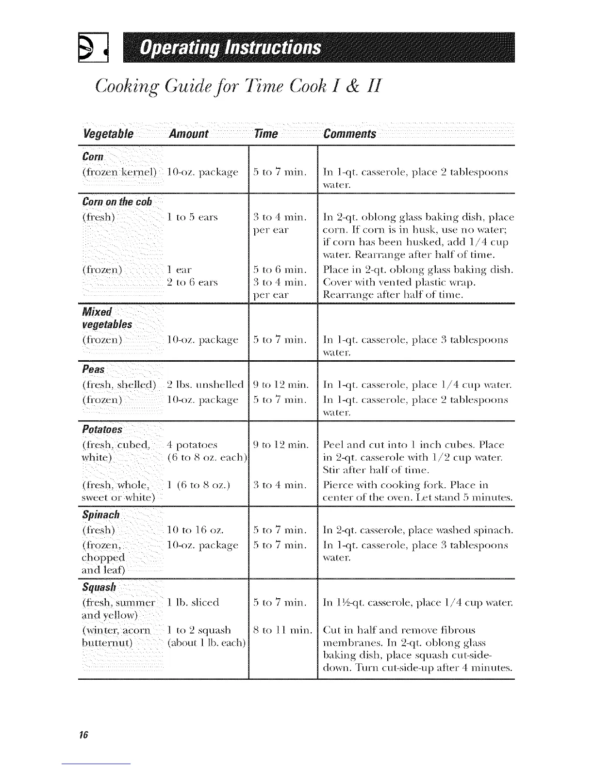 Vegetable Amount Time Comments