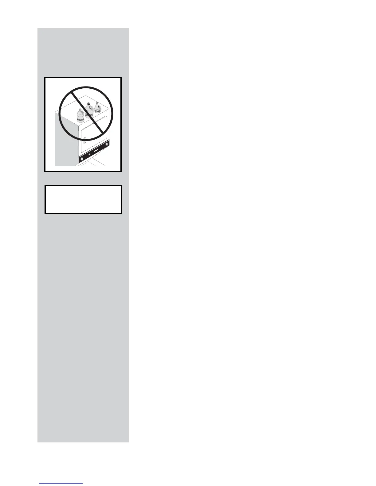 Do not store items or cleaning products on top of the Laundry Centre.
