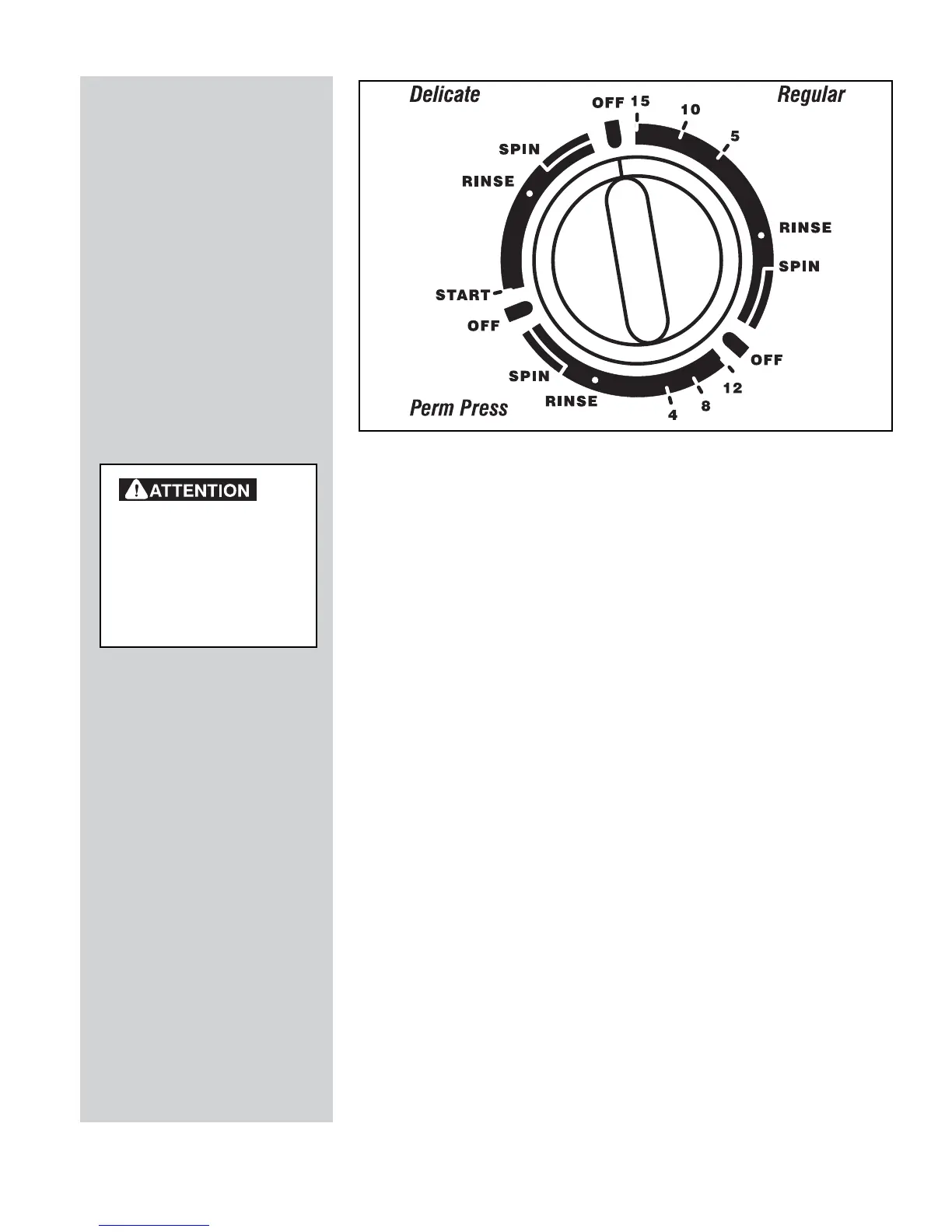 les étiquettes de l’emballage. Tournez la commande de la minuterie au cycle