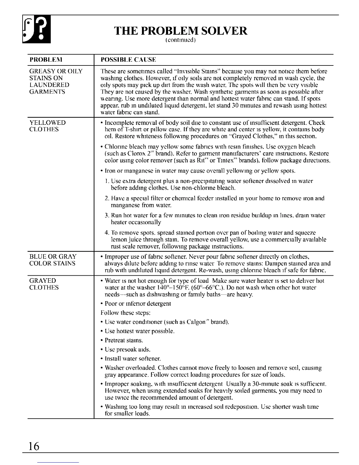 • Improper soaking, with insufficient detergent Usually a 30-minute soak _s sufficient.