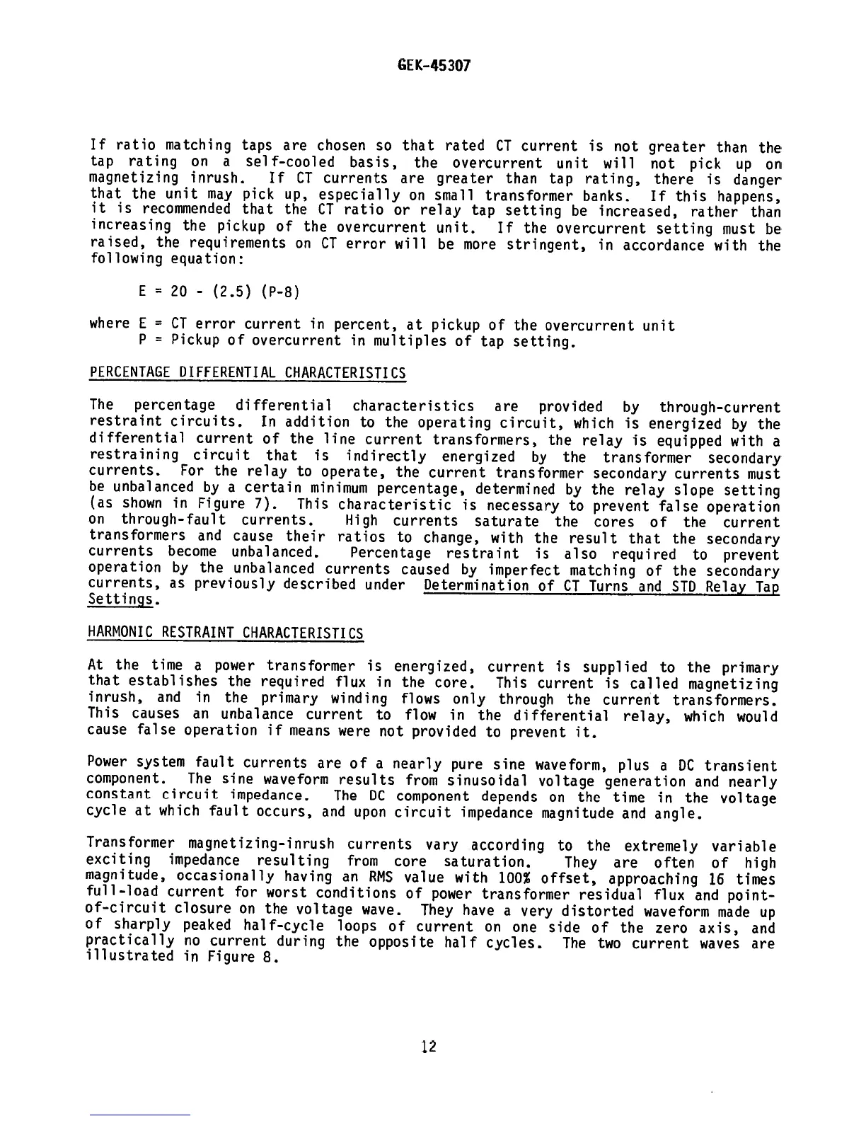 GE STD16C - PERCENTAGE DIFFERENTIAL CHARACTERISTICS; HARMONIC RESTRAINT CHARACTERISTICS