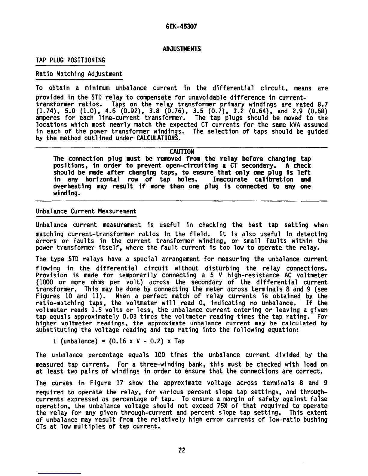 GE STD16C - ADJUSTMENTS; TAP PLUG POSITIONING; PERCENT SLOPE SETTING