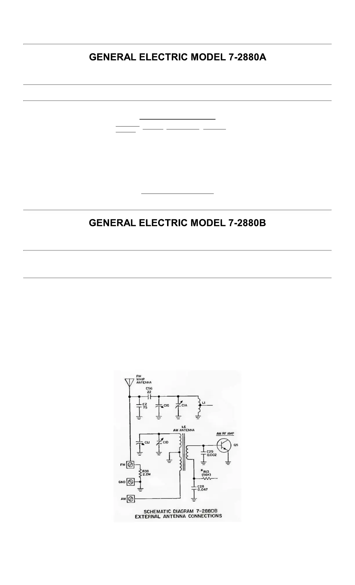 This service manual contains the unique replacement parts list and partial schematic for the model 7-2880B AM/FM Portable Radio. The