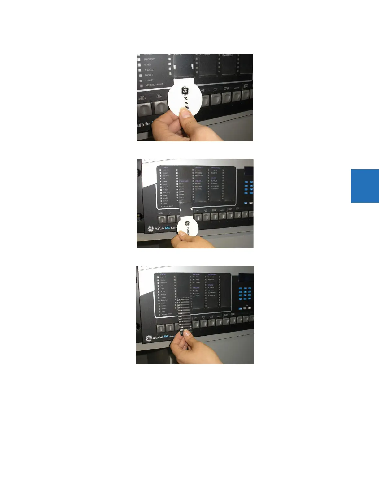 4. Slide the new LED label inside the pocket until the text is properly aligned with the LEDs, as shown.