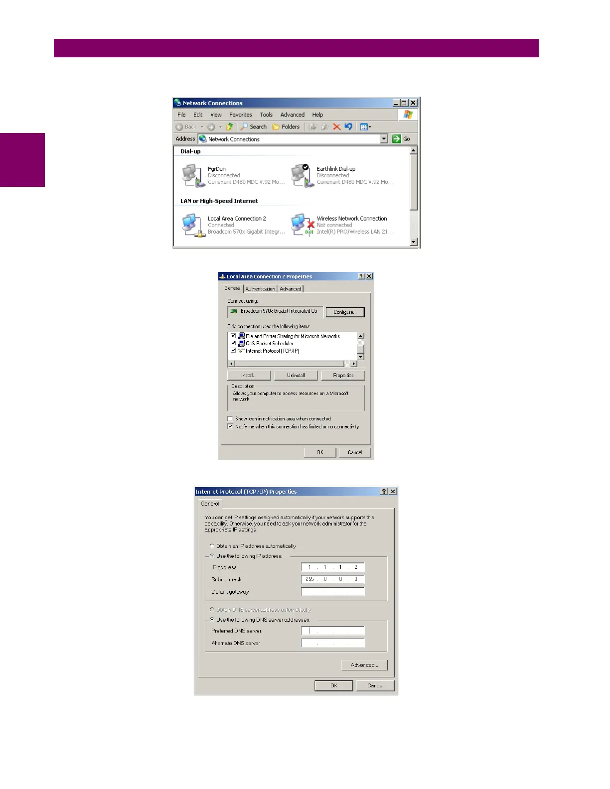 1. From the Windows desktop, right-click the My Network Places icon and select Properties to open the network con-