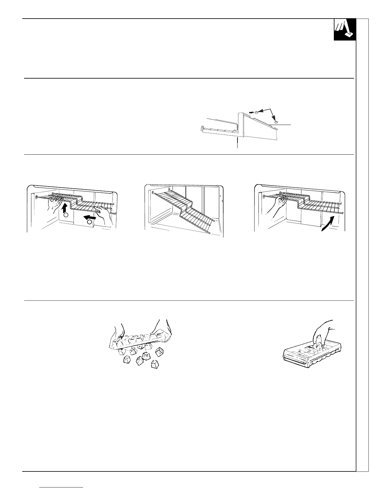 Pour enlever la clayette pour moules à glaçons : dégagez le côté