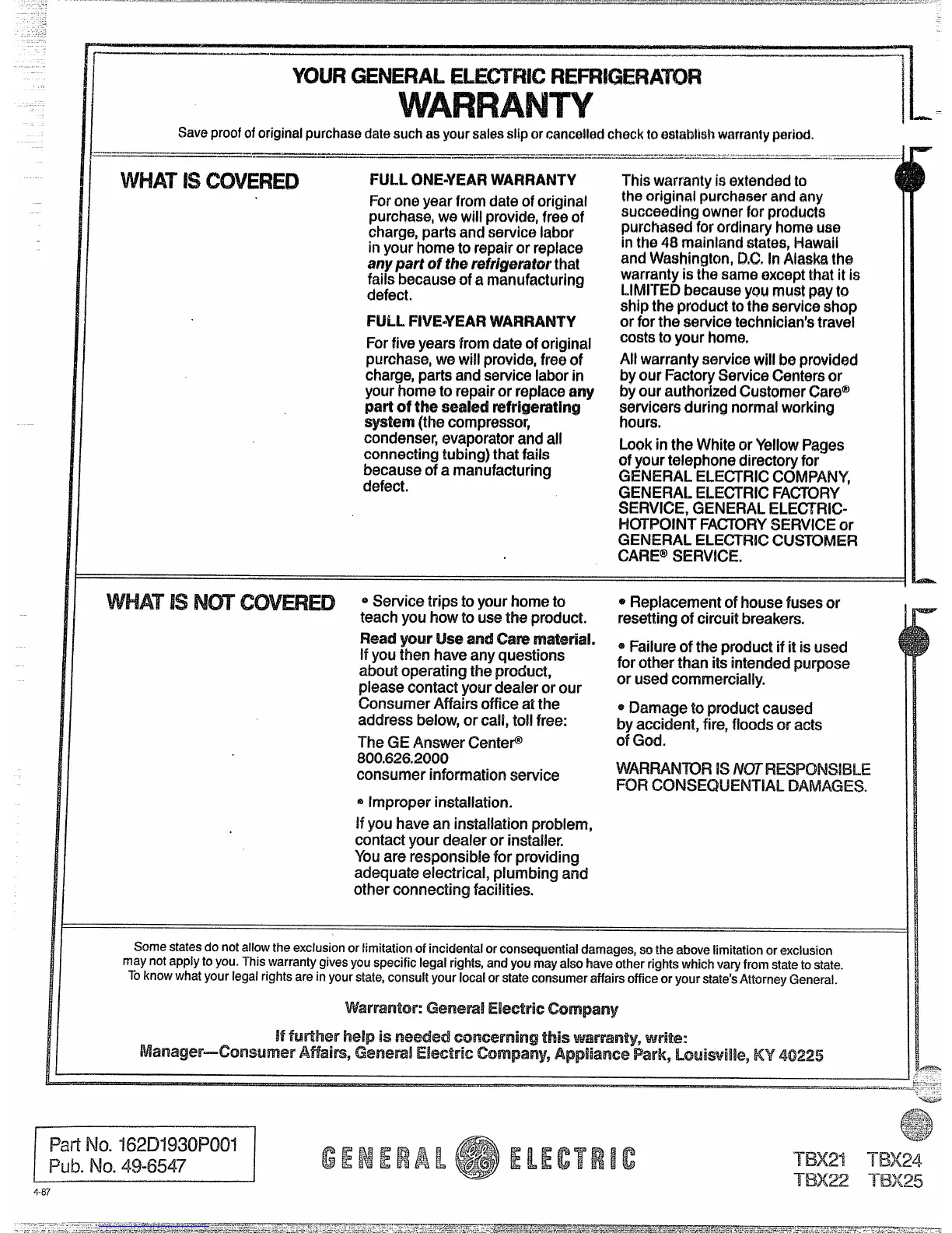 warrantor: Geneml Electric company