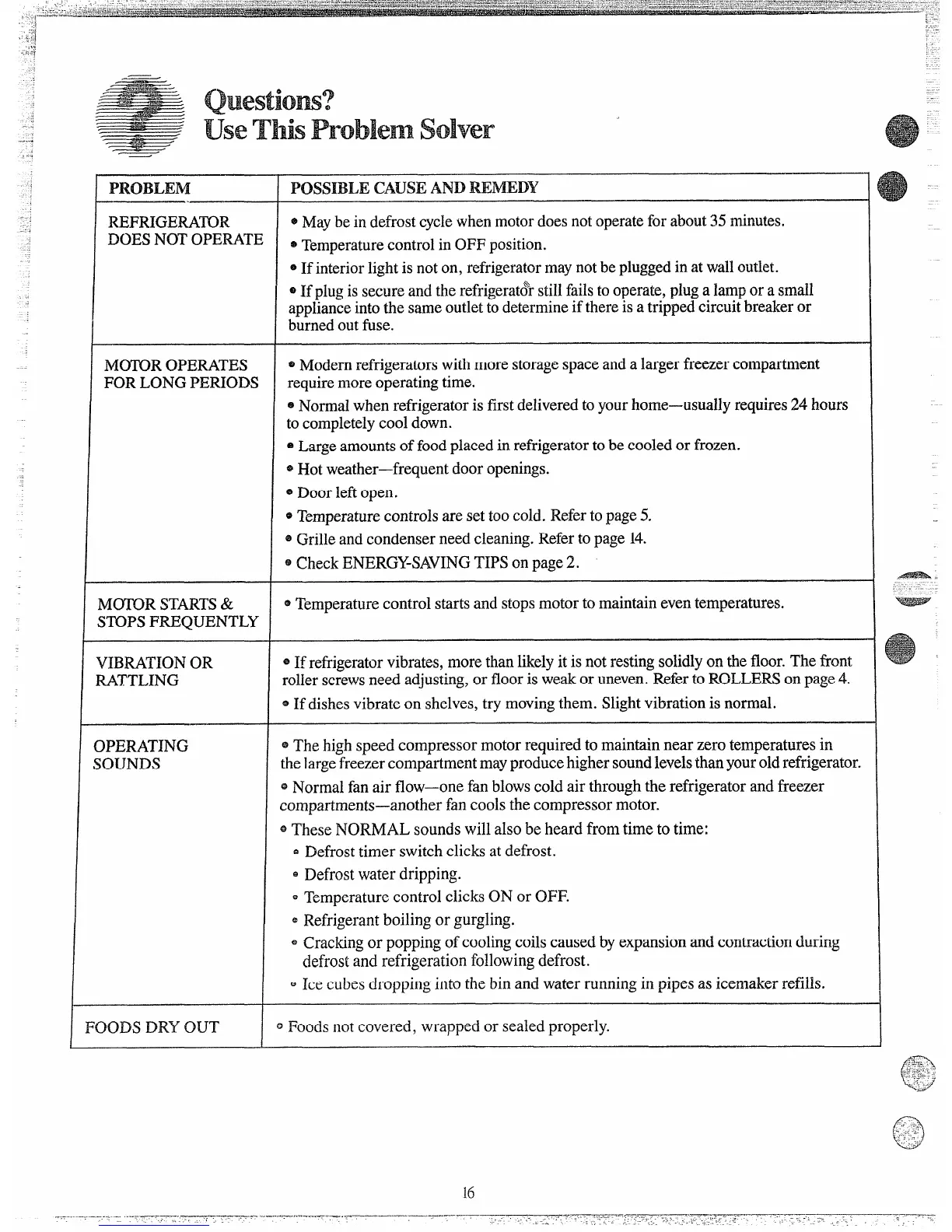 @If refrigeratorvibrates, more than likelyit is not resting solidlyon the floor.The front