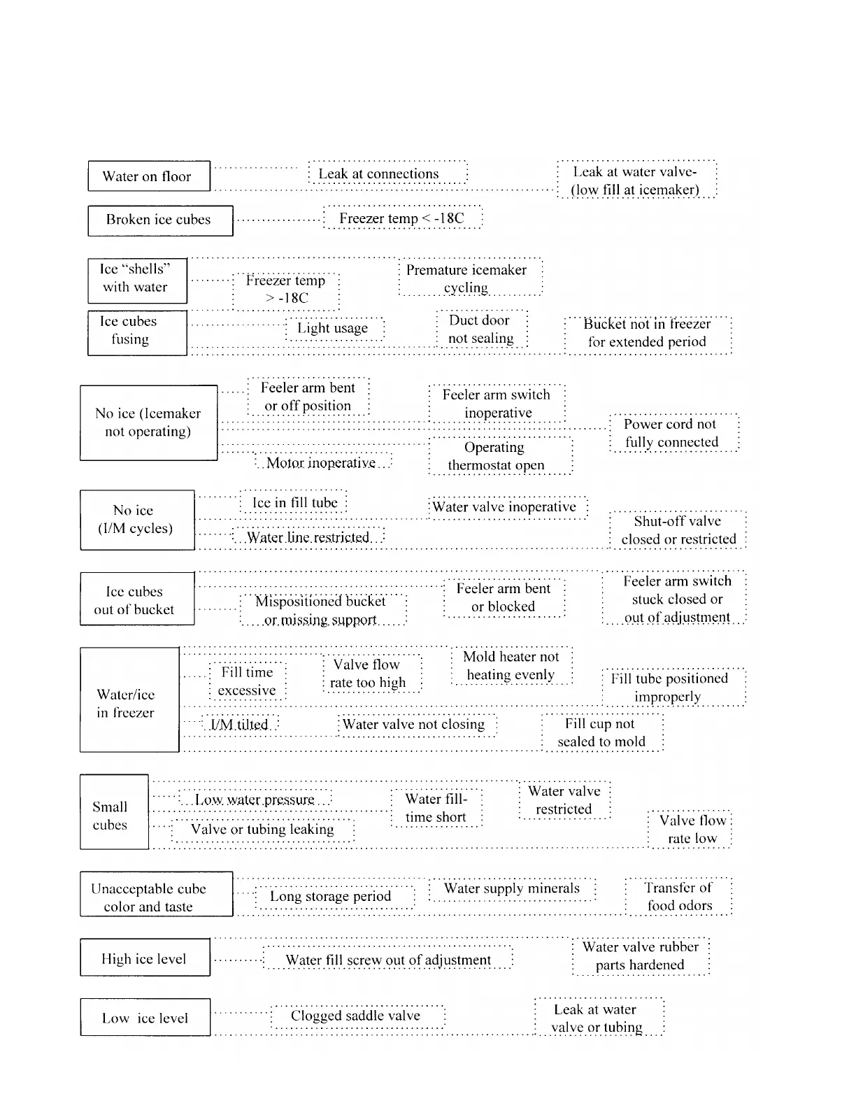 COMMON COMPLAINTS / DIAGNOSIS FOR ICEMAKER