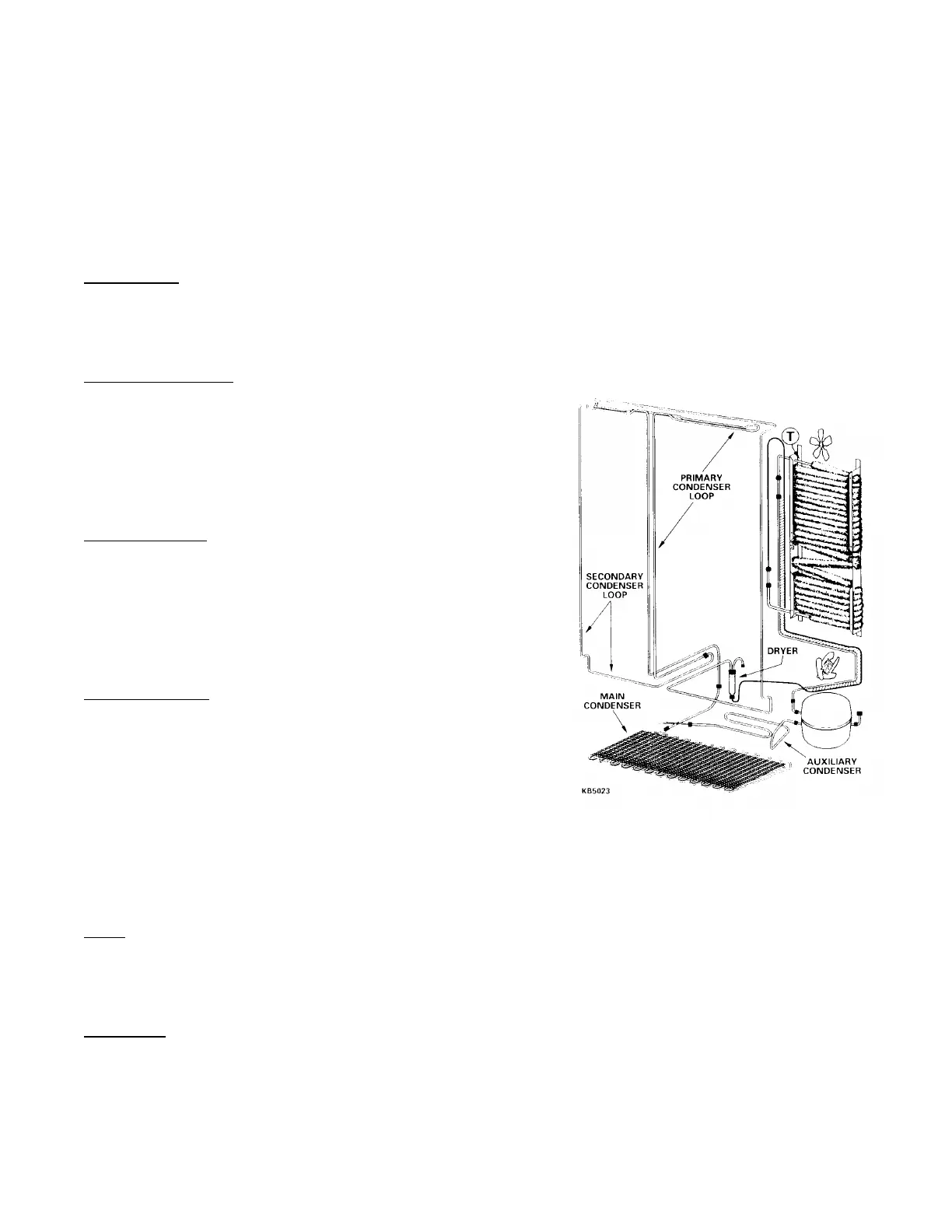 The major components of the refrigeration system are a reciprocating type compressor, an auxiliary