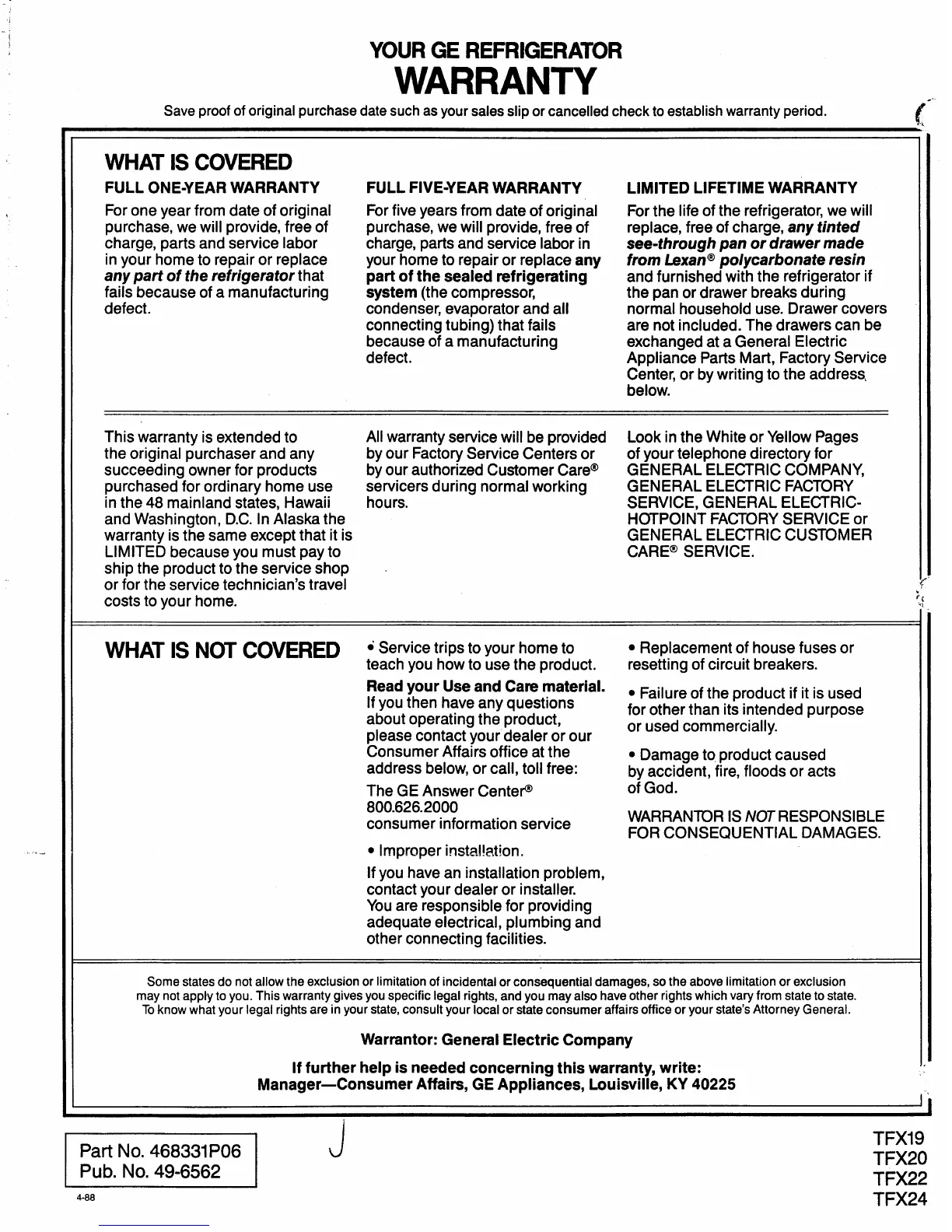 Save proof of original purchase date such as your sales slip or cancelled check to establish warranty period.