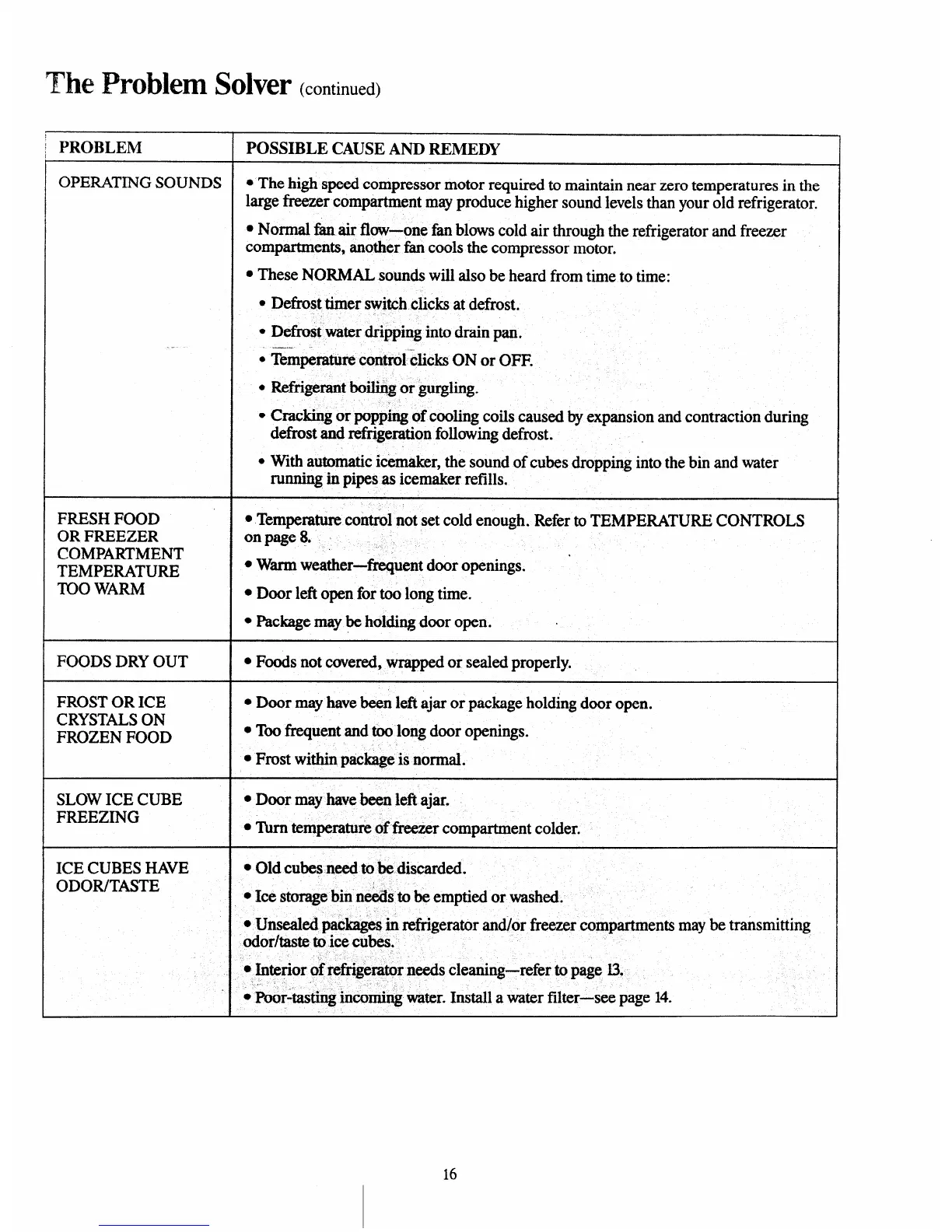 ● Temperatum control not set cold enough. Refer to TEMPERATURE CONTROLS