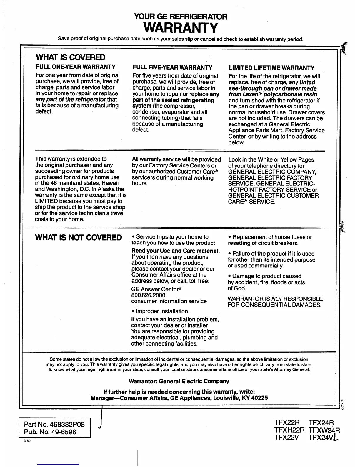 Save proof of original purchase date such as your sales slip or cancelled check to establish warranty period.