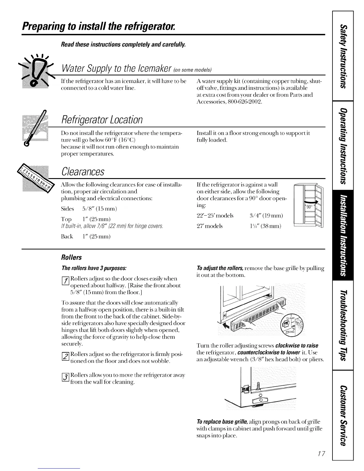 Preparingto installthe refrigerator.