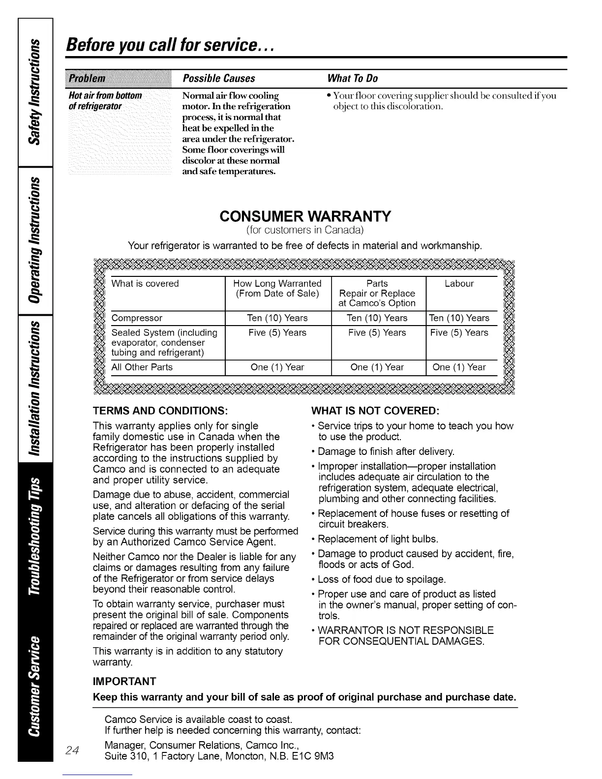 Your refrigerator is warranted to be free of defects in material and workmanship.