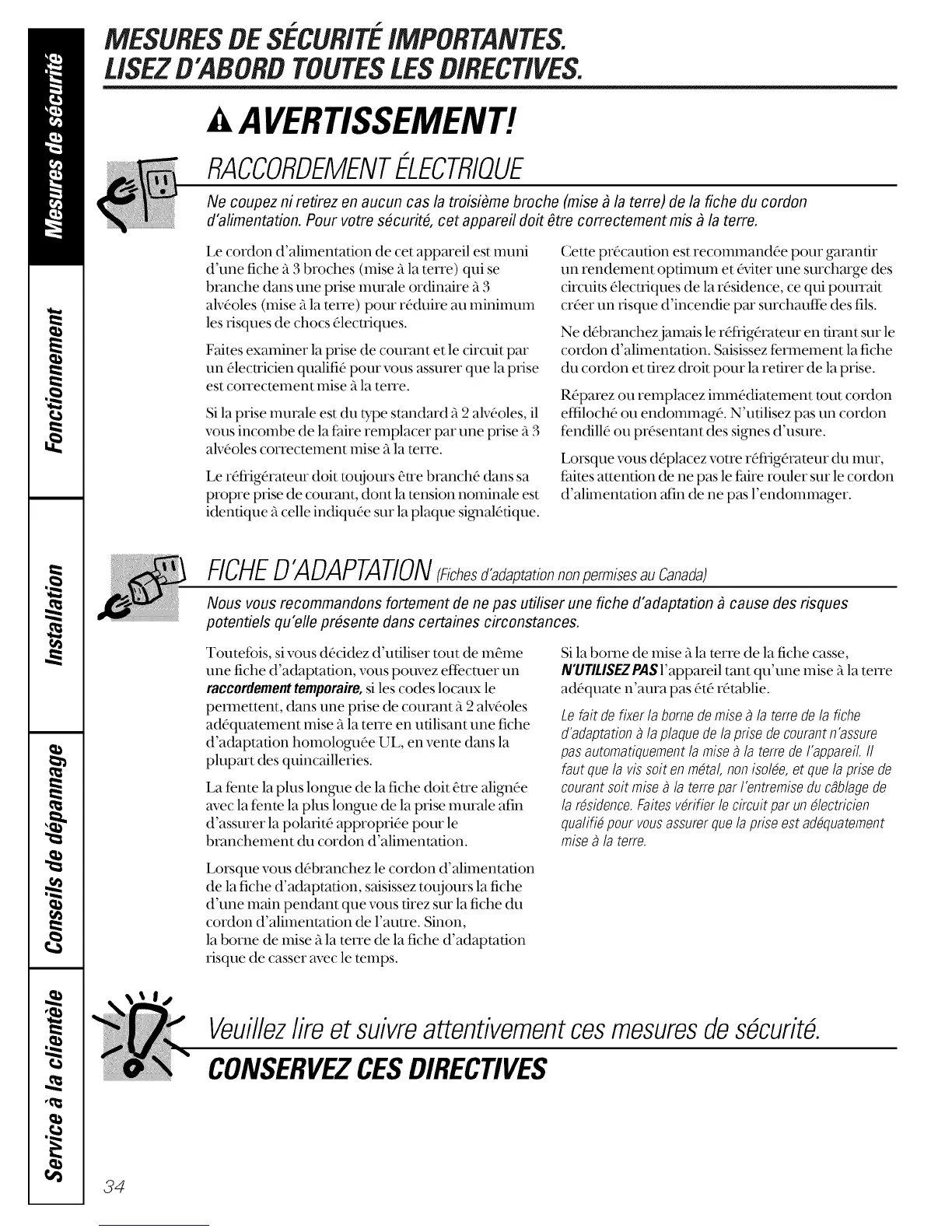 Ne coupez ni retirez en aucun cas la troisibme broche (mise _ la terre) de la fiche du cordon
