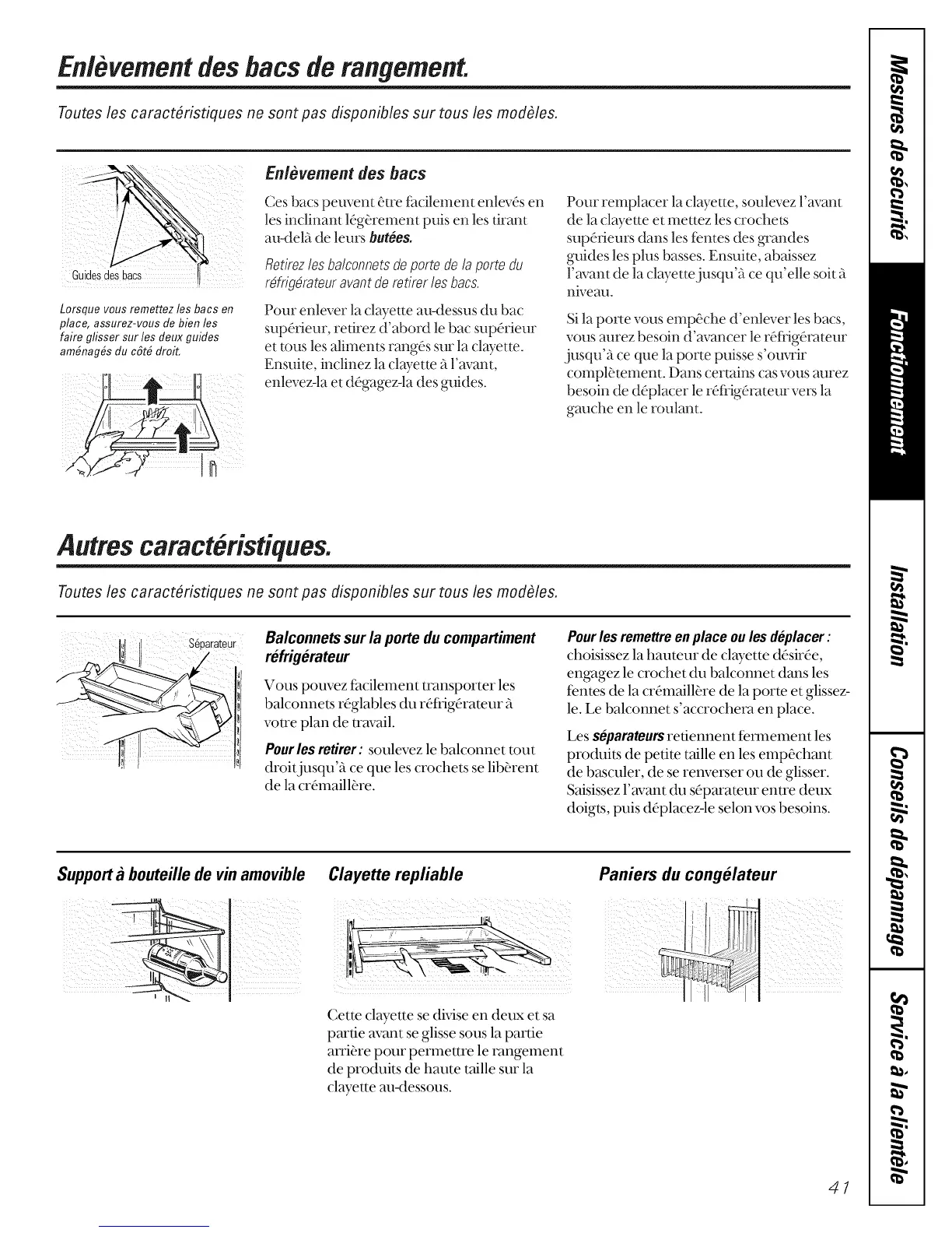 Toutes les caract6ristiques ne sont pas disponibles sur tous les modbles.