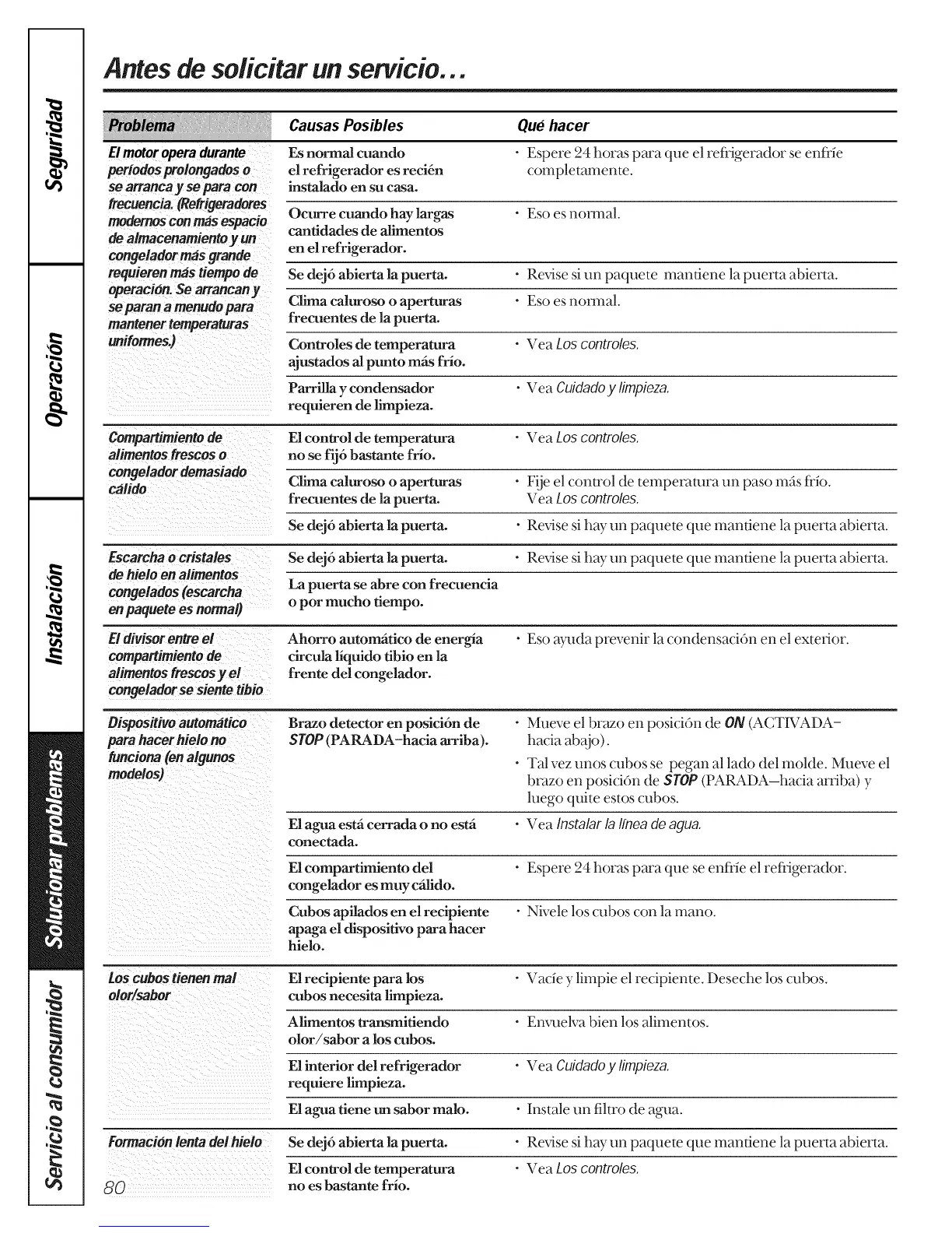 Escarchao cristales Se dej6 abierta la puerta. • Revise si hay un paquete que mandene la puerto abierm.