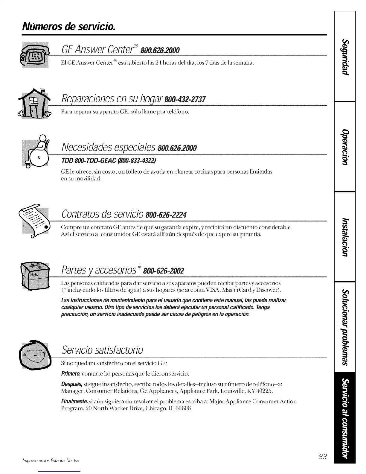 Pare reparar su aparato GE, s61o llame per tel(_fbno.