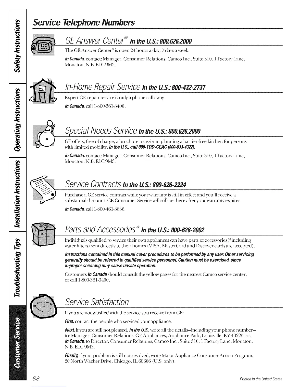 The GE Answer Center ®is open 24 hours a day, 7days a week.