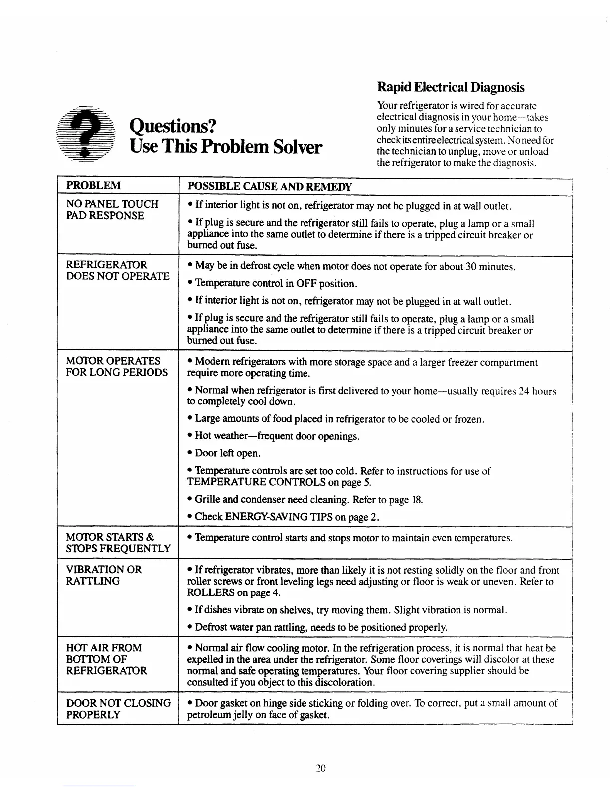 ● If refrigerator vibrates, more than likely it is not resting solidly on the floor and front