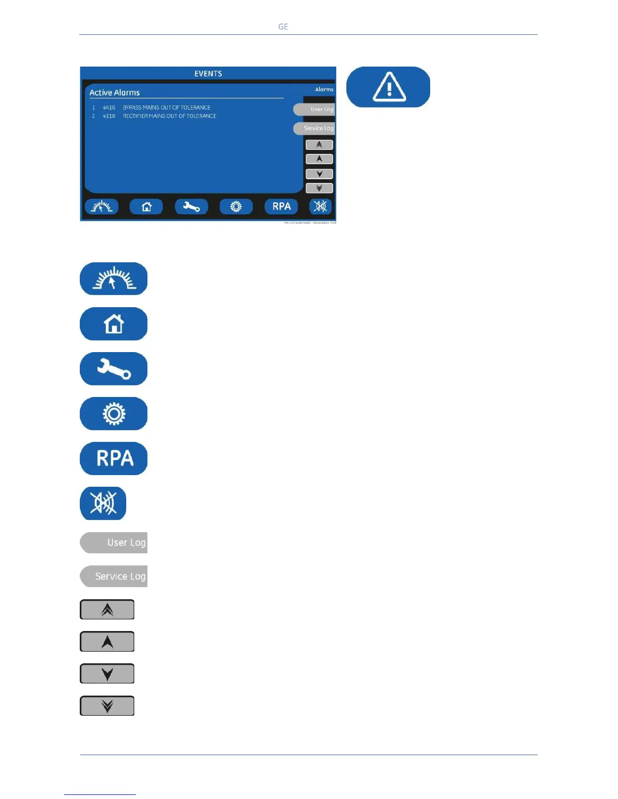 Shows the screen Service Events. Reserved for the Service Centre.
