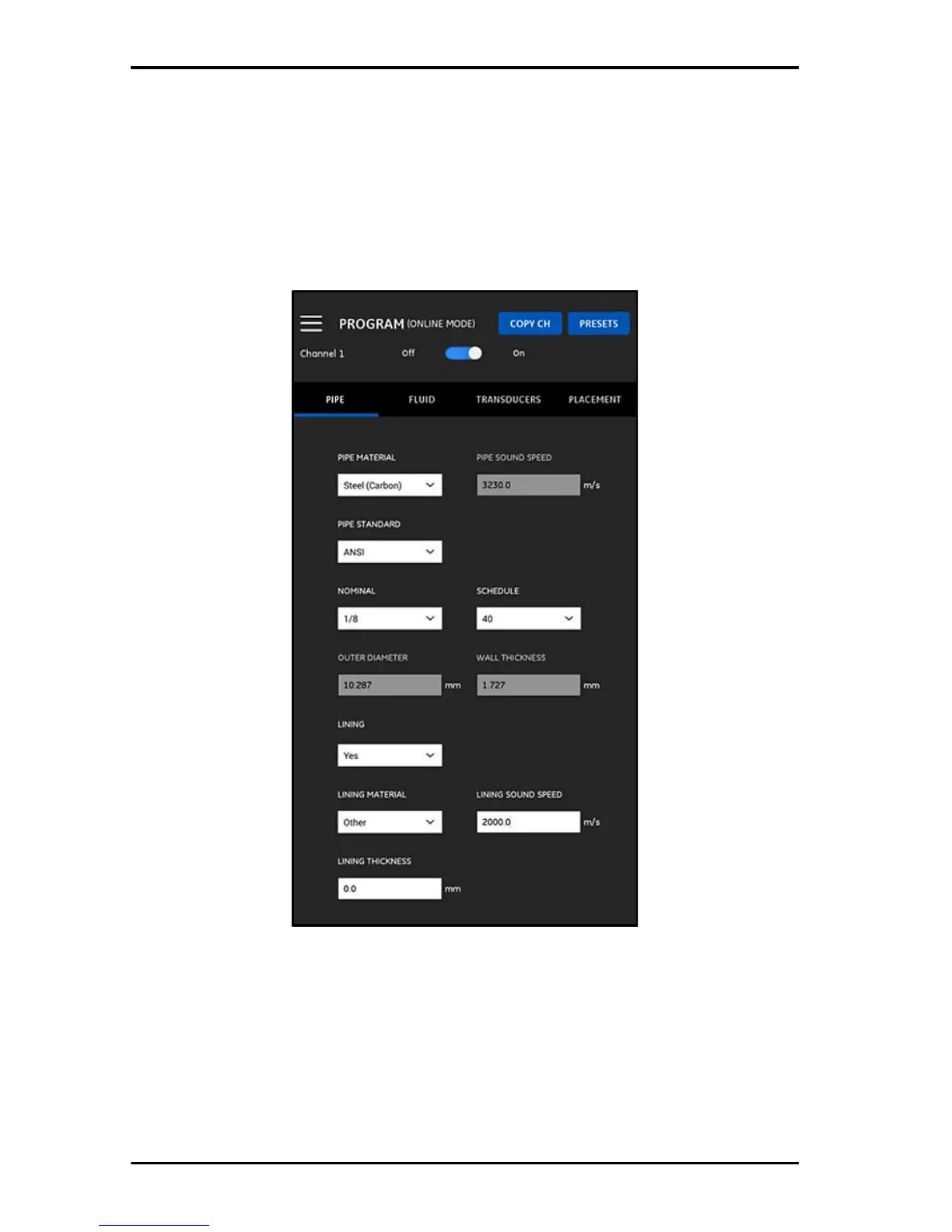 Use the PIPE menu (see Figure 16 below) to specify all pipe parameters, to ensure
