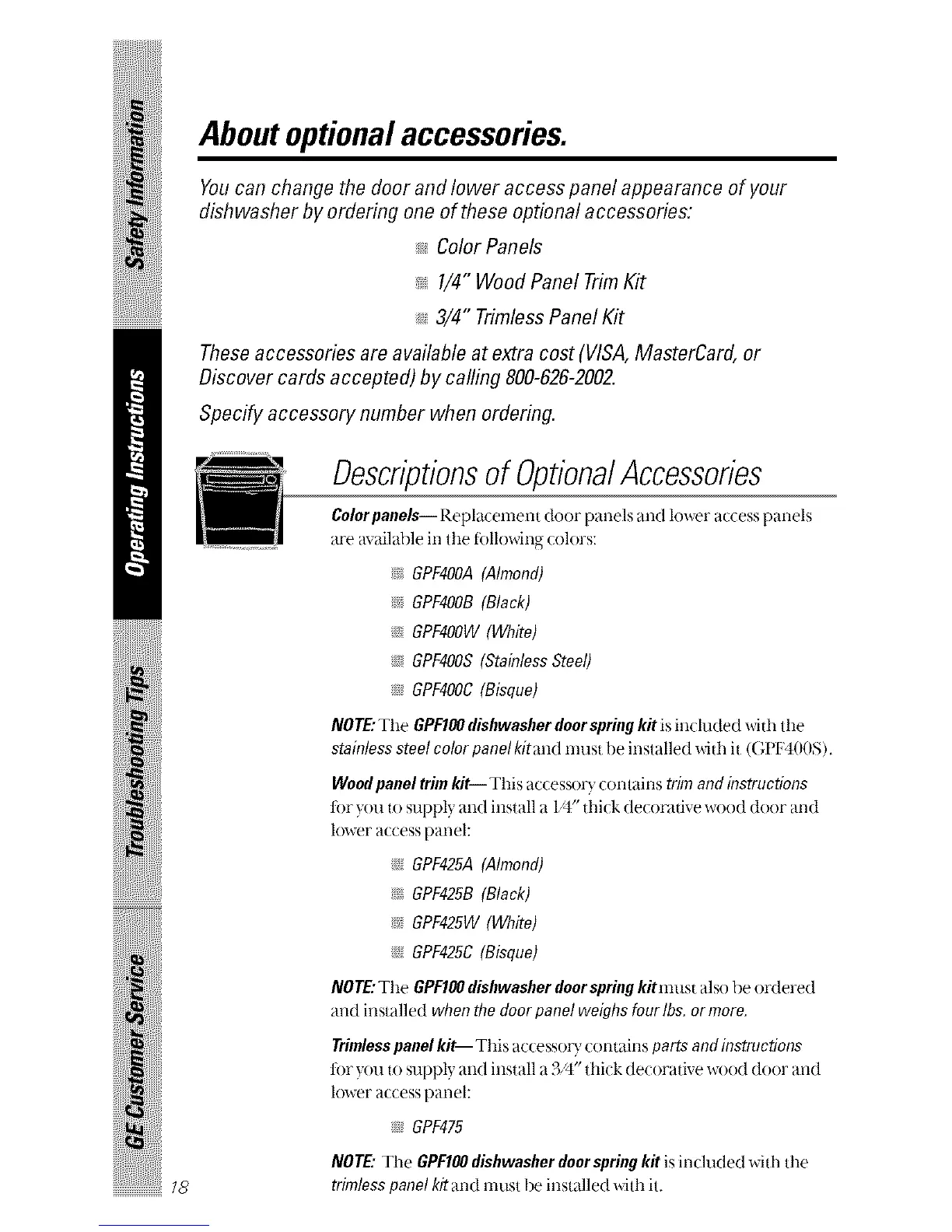 NOTE: The GPFIO0 dishwasher door spring kitmust also be ordered
