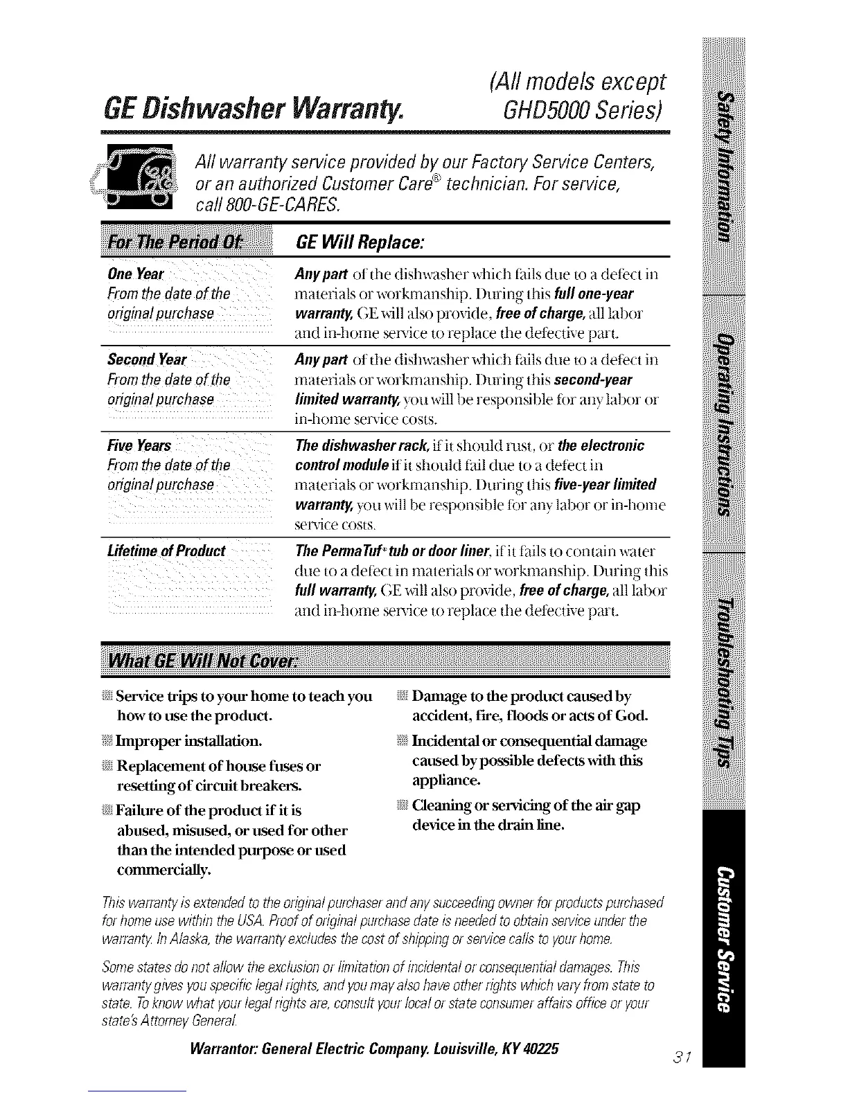 GEBishwasher Warranty. GHD5000Series)