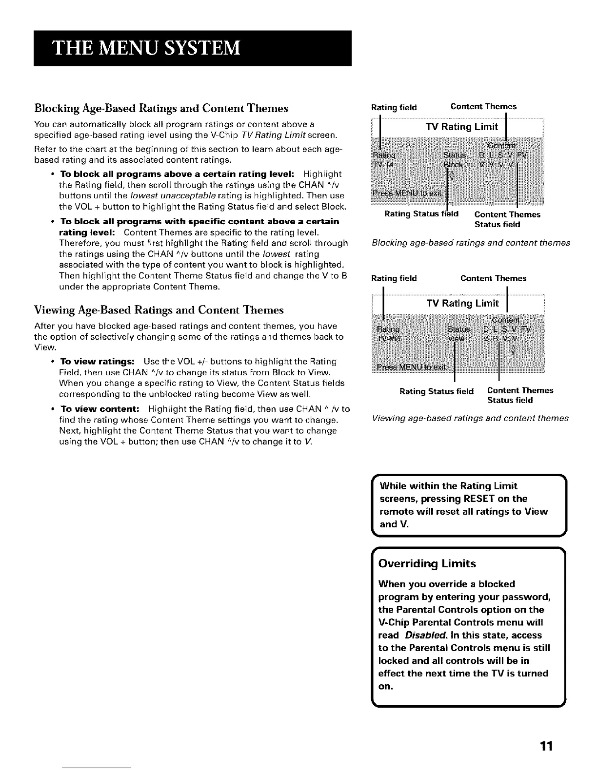 specified age-based rating level using the V-Chip TVRating Limitscreen.