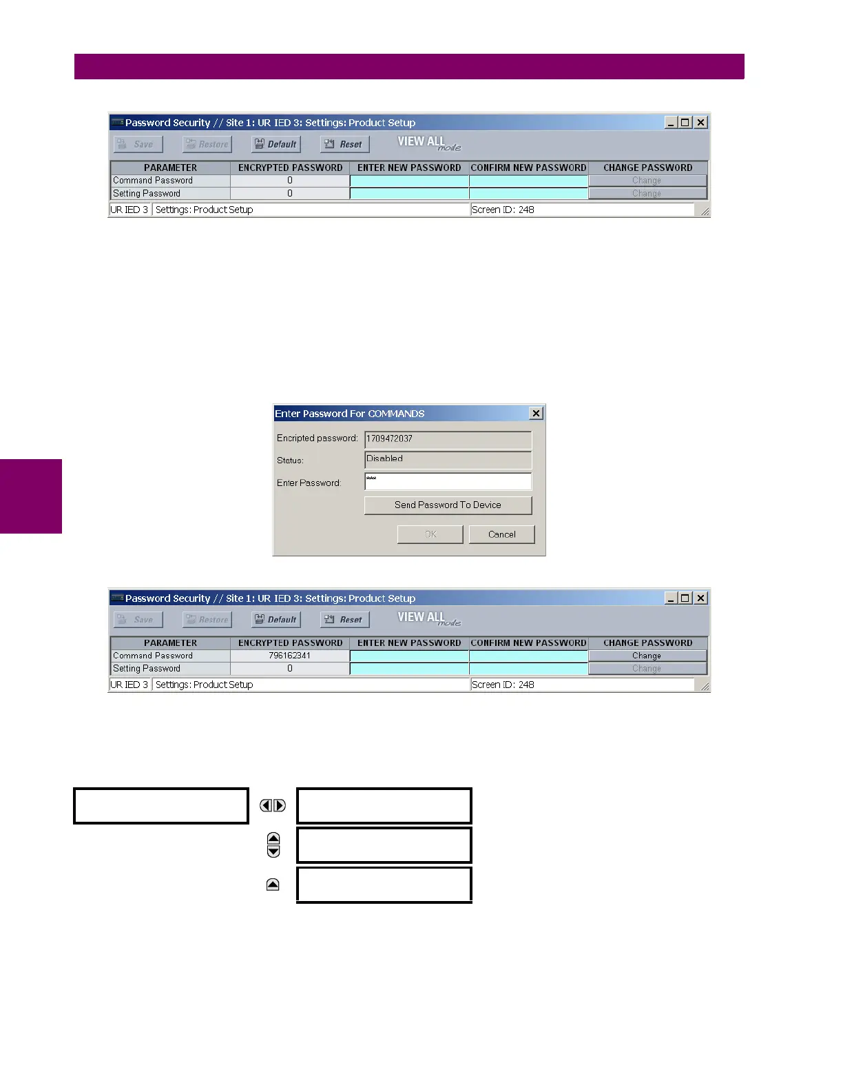 Proper passwords are required to enable each command or setting level access. A command or setting password consists