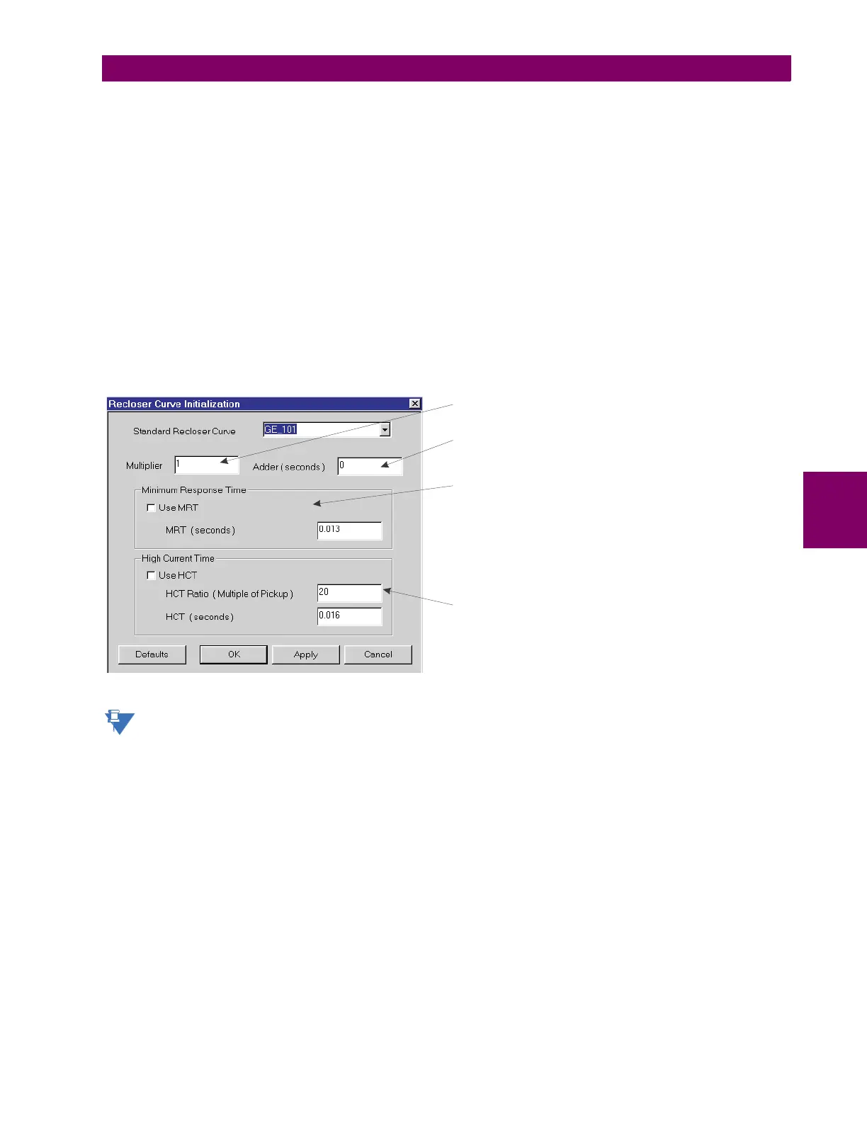 Figure 5–27: RECLOSER CURVE INITIALIZATION