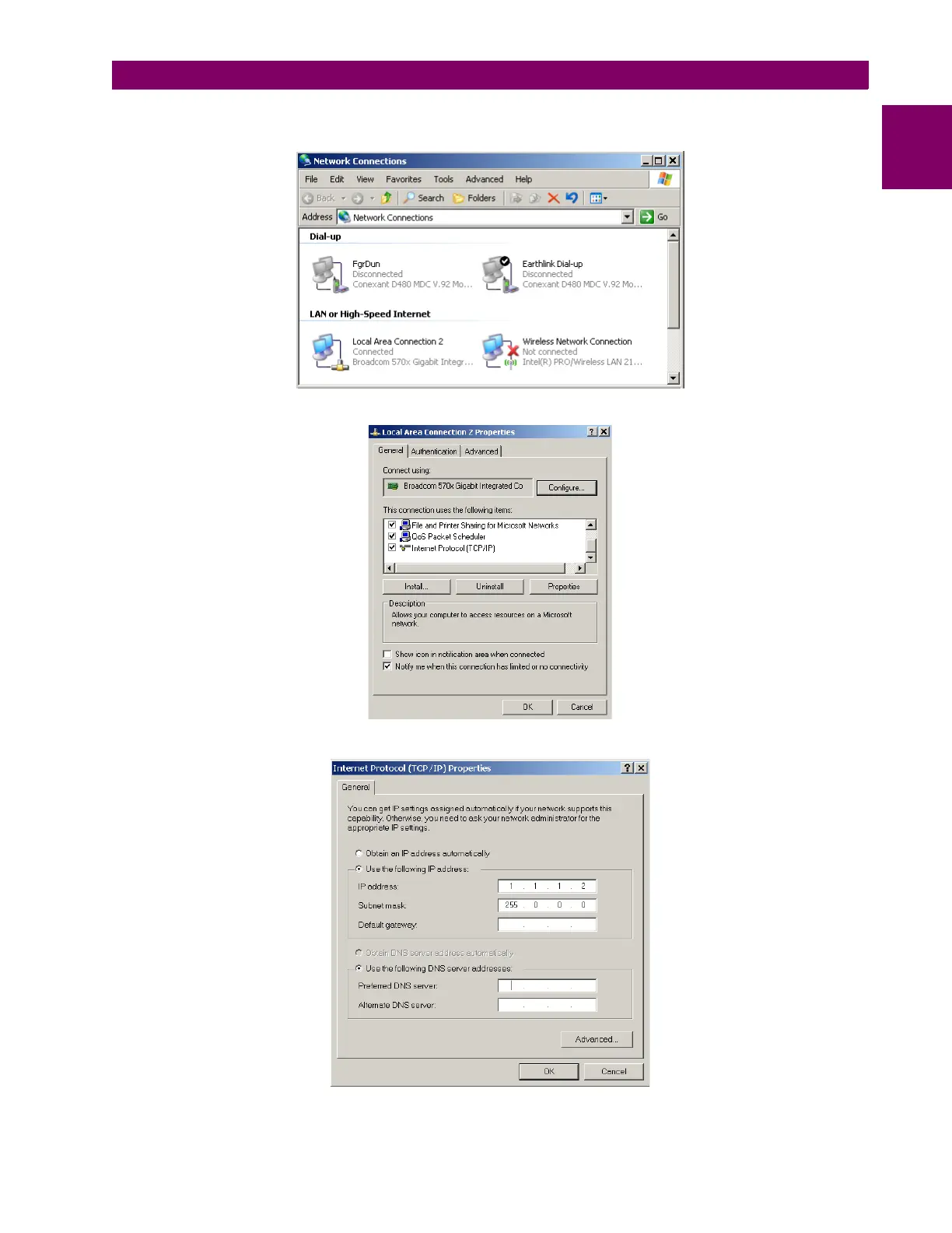 1. From the Windows desktop, right-click the My Network Places icon and select Properties to open the network con-