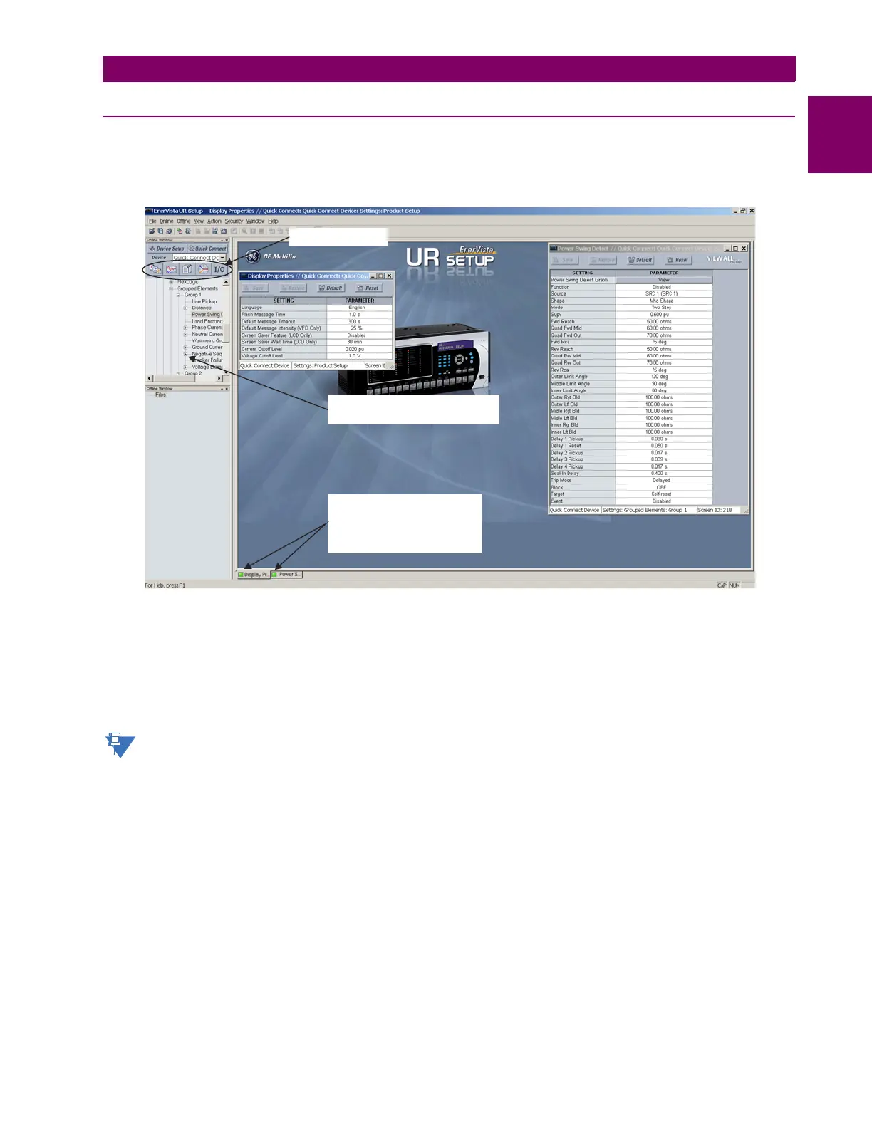 2. The Display Properties window will open with a status indicator on the lower left of the EnerVista UR Setup window.