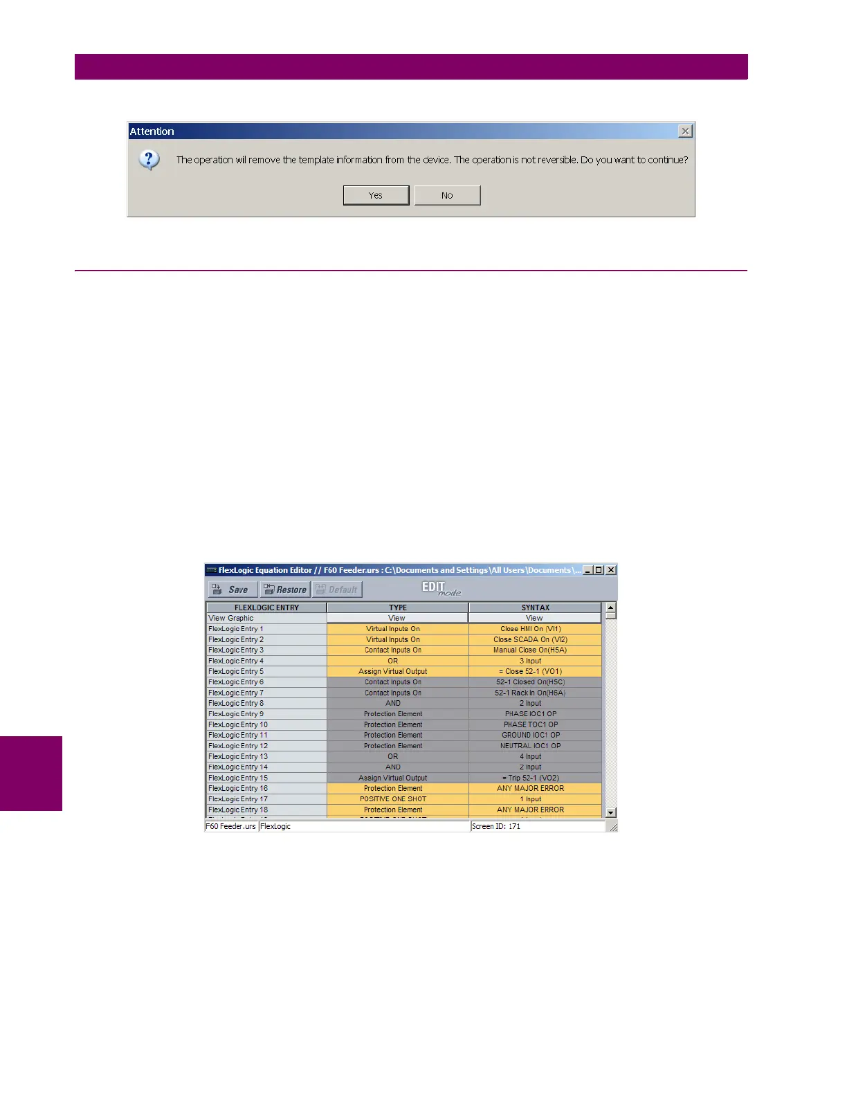 Figure 8–7: LOCKING FLEXLOGIC™ ENTRIES IN EDIT MODE