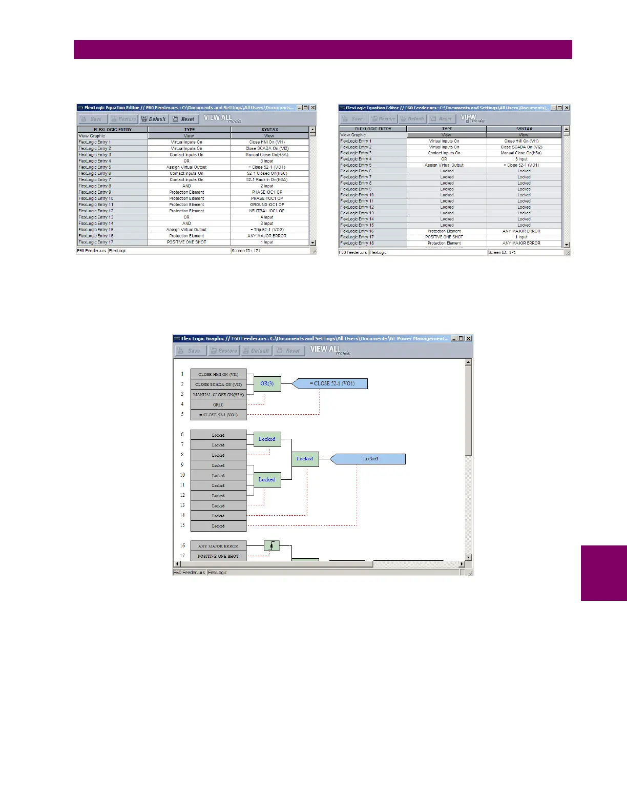 The FlexLogic™ entries are also shown as locked in the graphical view (as shown below) and on the front panel display.